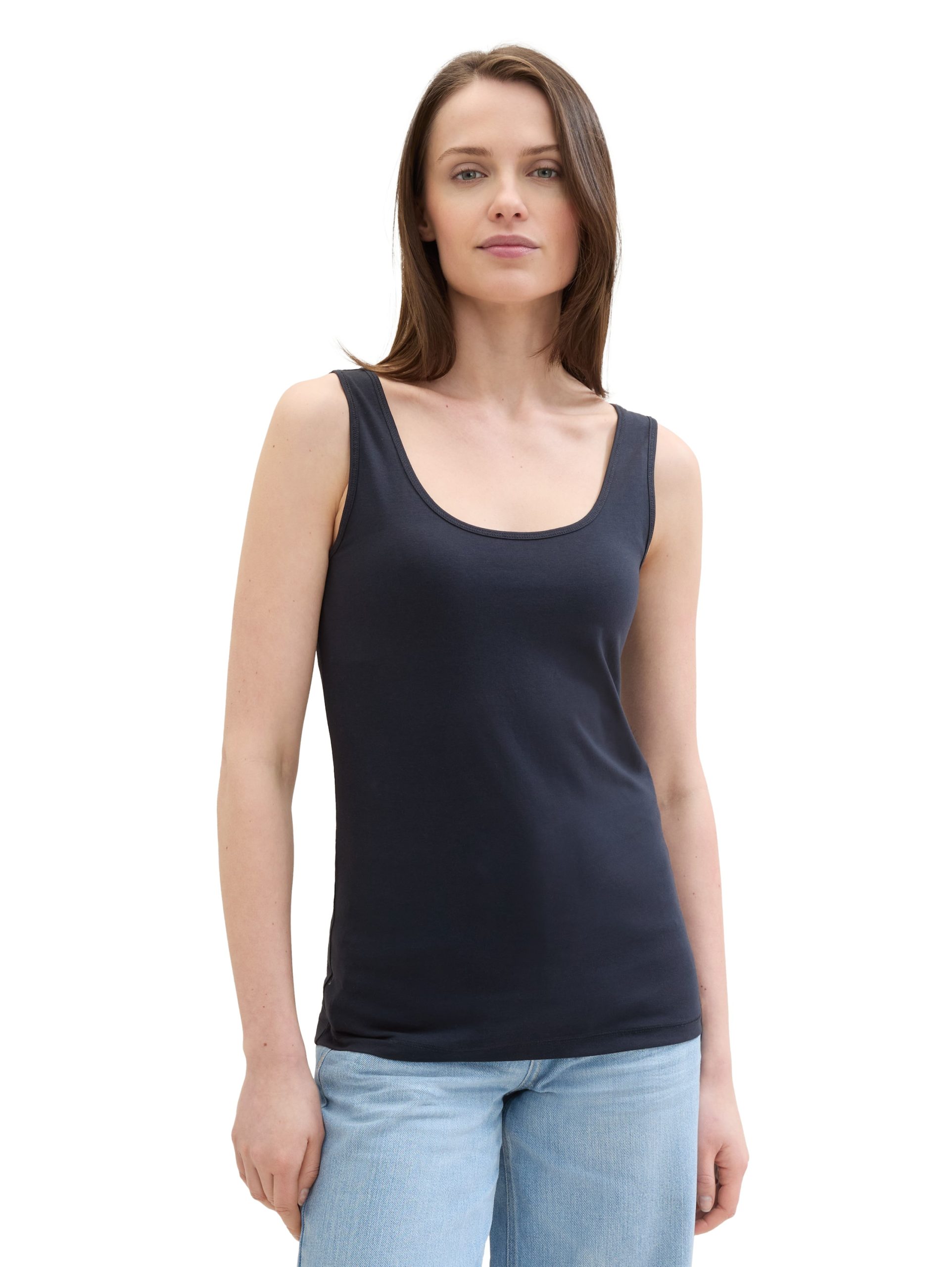 * sleeveless with a round neckline