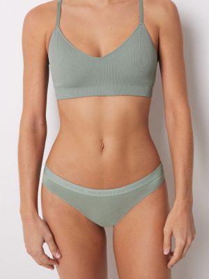 Classic BEAUTIFUL bra in blue ribbed cotton with delicate lace details. Plus, it”s underwired and padded to enhance the natural beauty of your chest. Ideal, right? Combine it with the matching panty for the full set. .