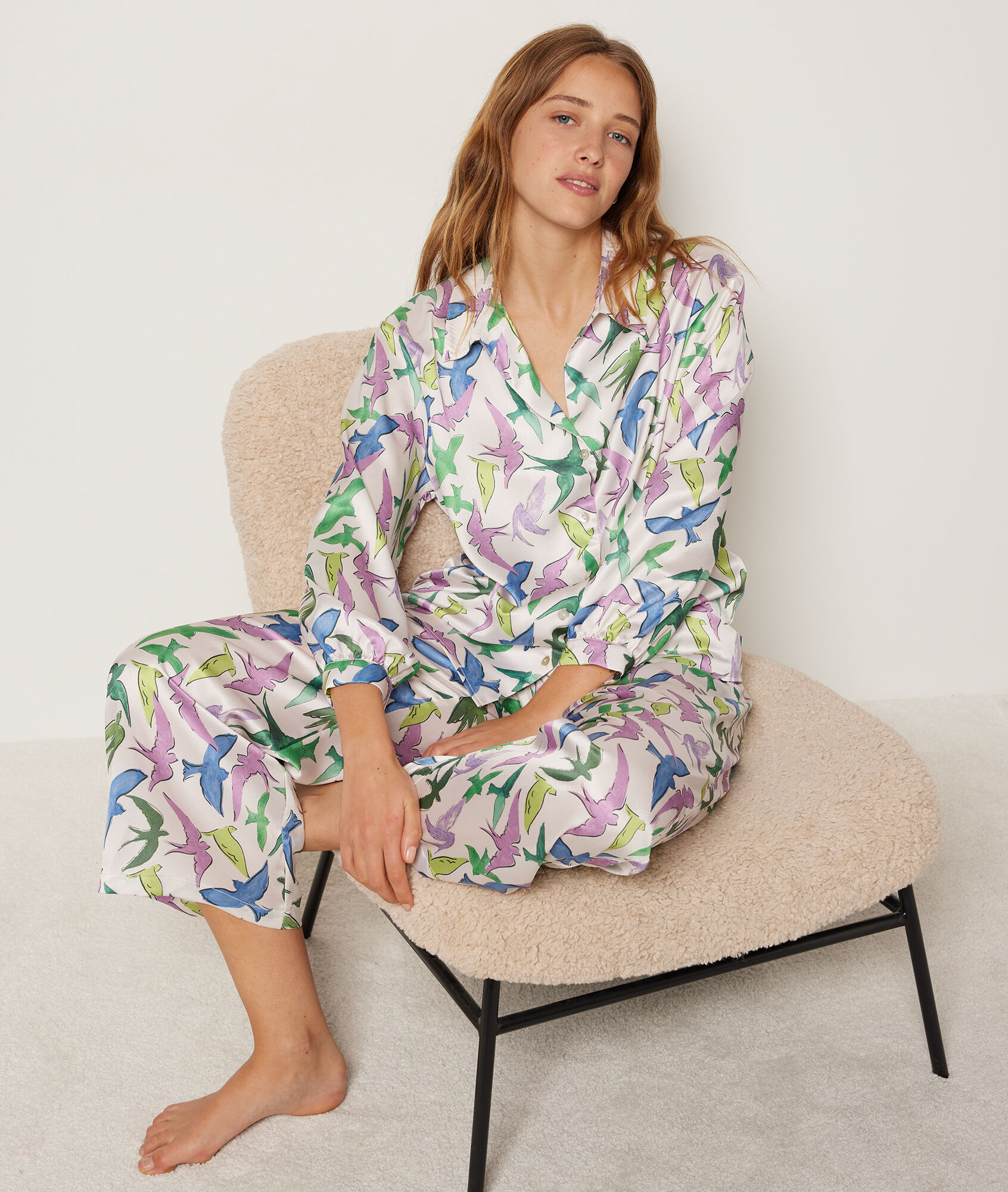 With its ultra-light material and brightly colored bird patterns, these pajama pants are perfect for chic and pleasant nights.
