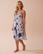 Blue Floral Print Frill Detail Satin Nightie