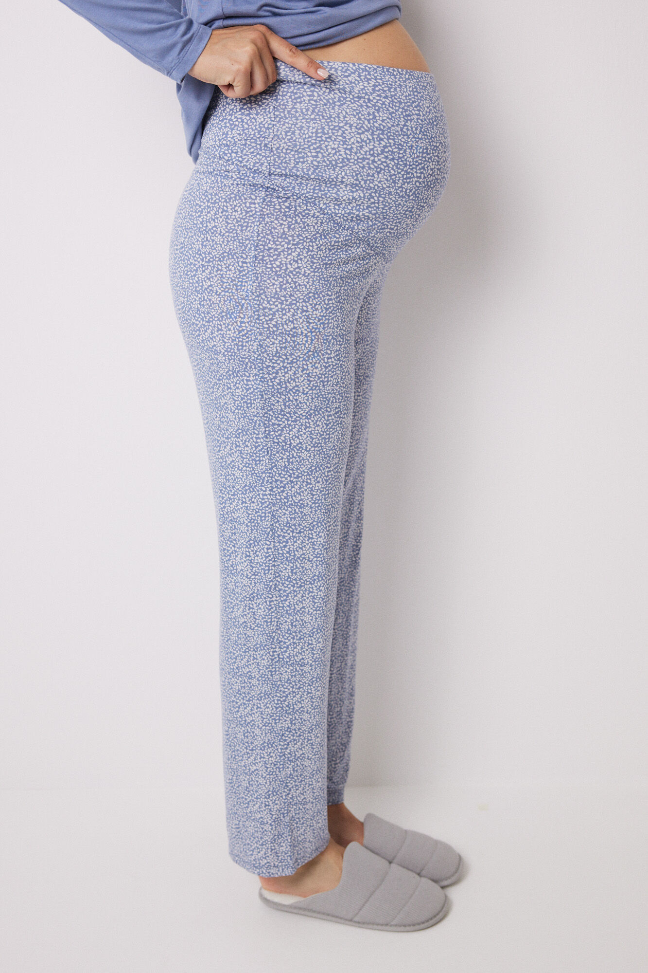 Maternity pyjamas for pregnancy and post-partum, or nursing, as they”re very comfortable for breastfeeding too. With long sleeve and long trouser with a waist for growing bellies, in blue, made of super soft ECOVERO viscose jersey-knit . Combines with oth