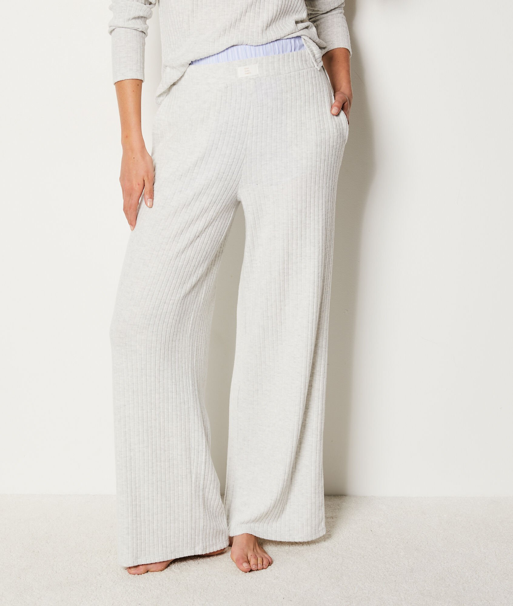 These pajama pants in ribbed and ultra soft material, have an elasticated waist and a wide and flowing cut. They are perfect for feeling comfortable and cocooned all winter long!