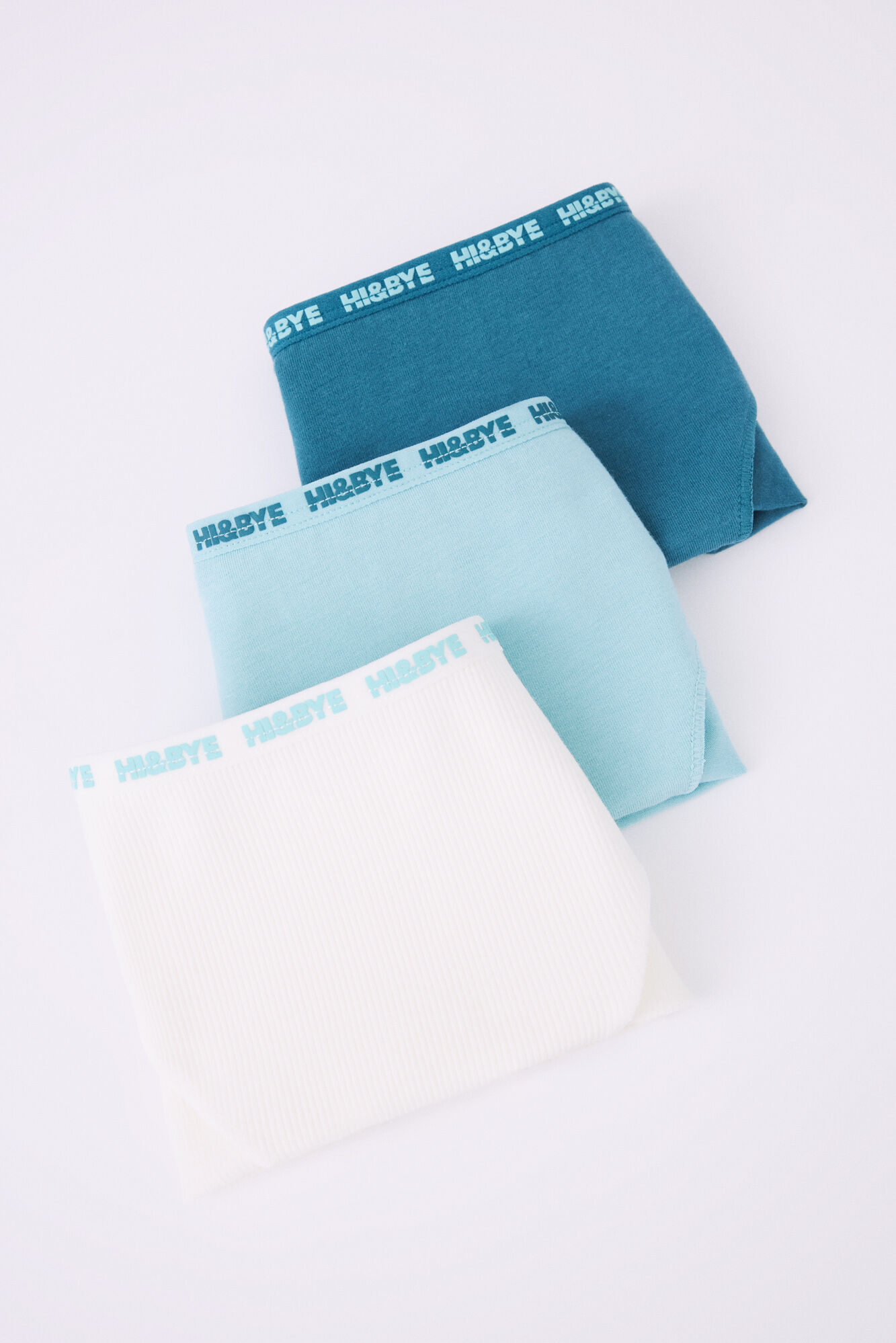 -50%Pack of 3 classic panties in multicolour cotton (turquoise, white and blue) with matching piping detail. One pair of panties comes in ribbed fabric, the other two are plain. Pick your favourite colours (there”s a huge variety of packs to choose from!) and