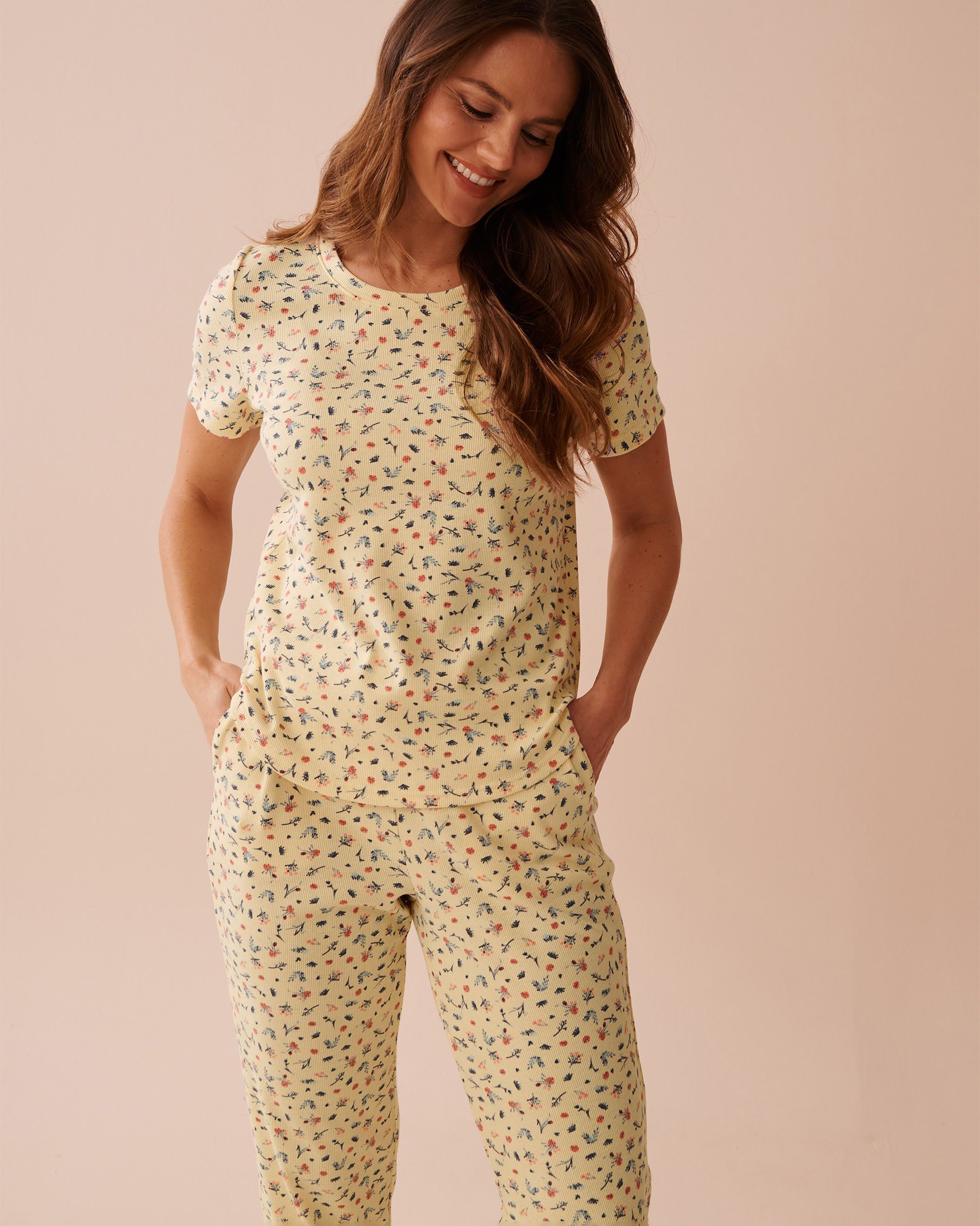 Bright yellow and dainty florals – this finely-ribbed pajama t-shirt screams spring. Just looking at it will have you dreaming of warmer weather and sunny mornings.