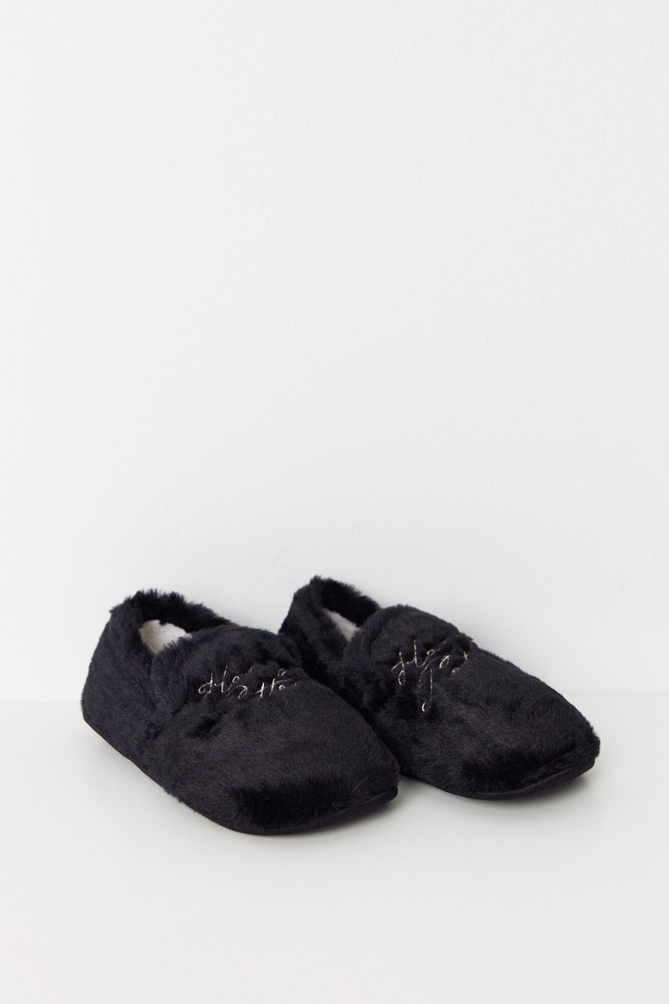 Closed, backless, loafer-style slippers with synthetic fur fabric on the outside, knob on the inside, and Harry Potter embroidered detail. Very warm, perfect for this season. Maximum quality on your feet! Combine them with their matching pyjamas and toile
