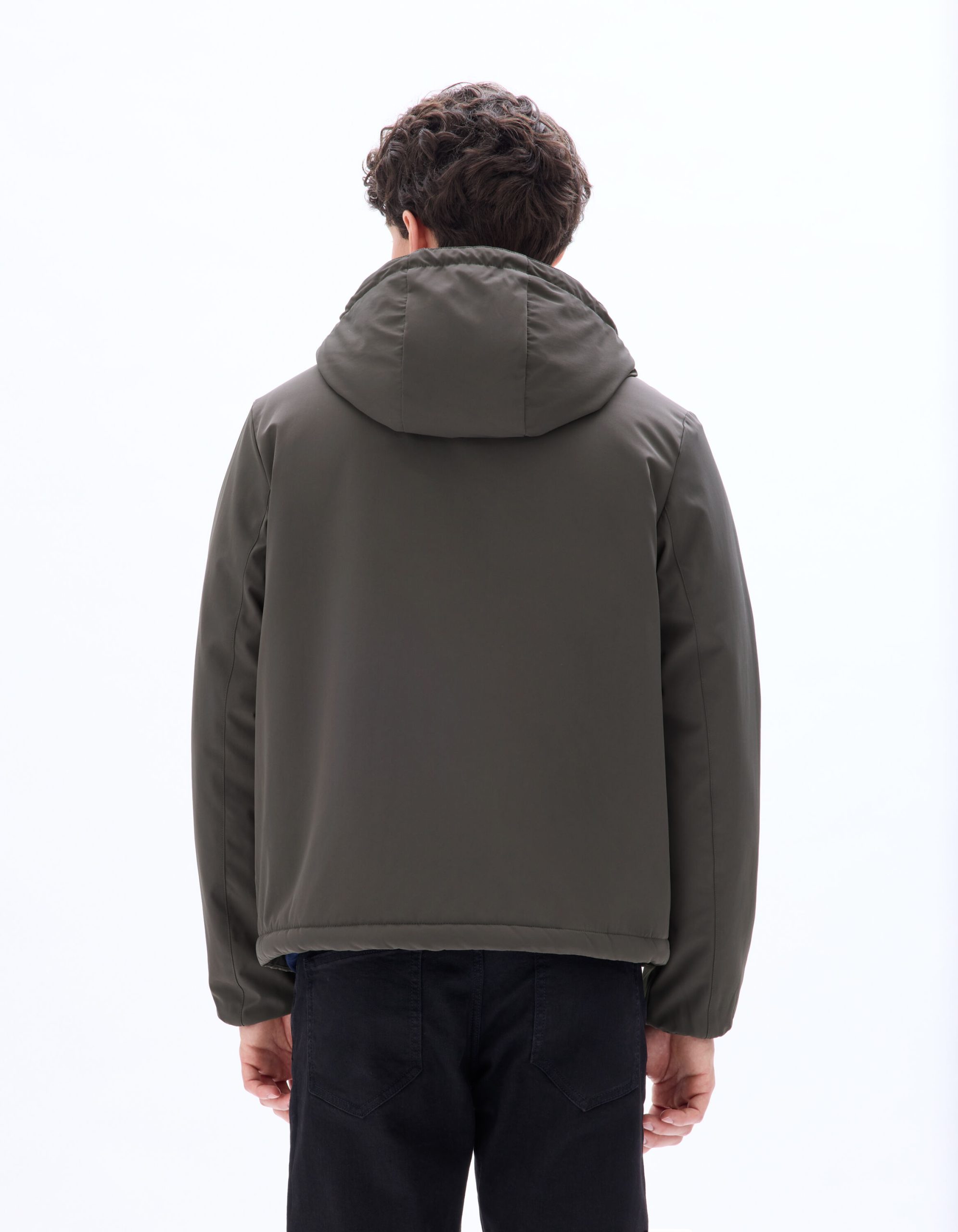 Face winter in style with this trendy jacket, ideal for the cold season. Features include a blue hooded jacket, sherpa lining, a front zip opening with a colorful zipper, and practical and secure zippered pockets. For a stylish look