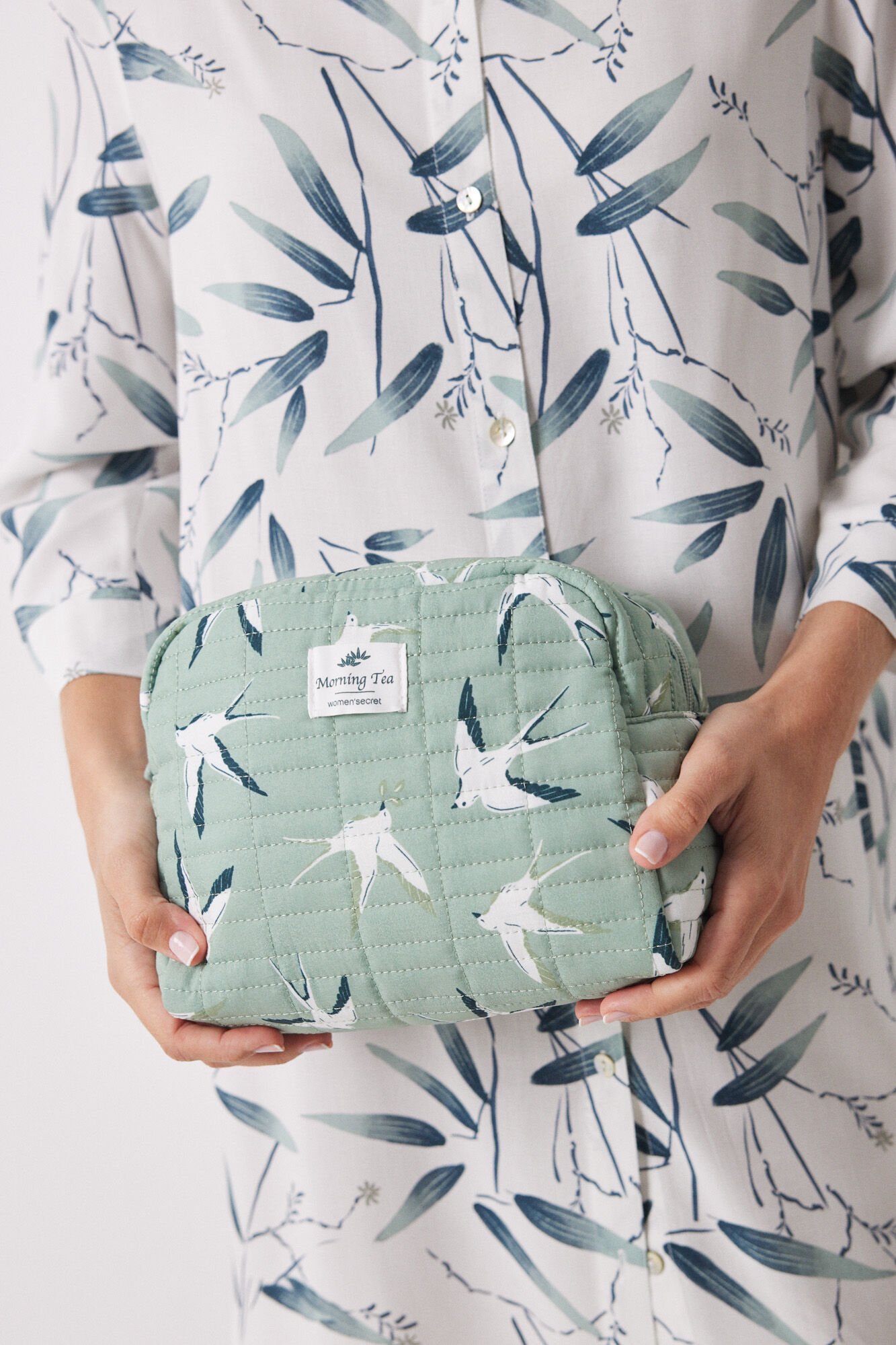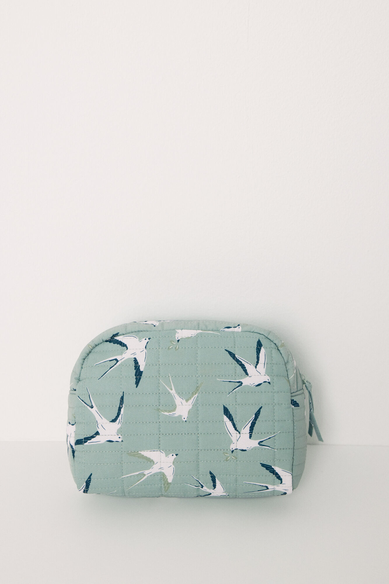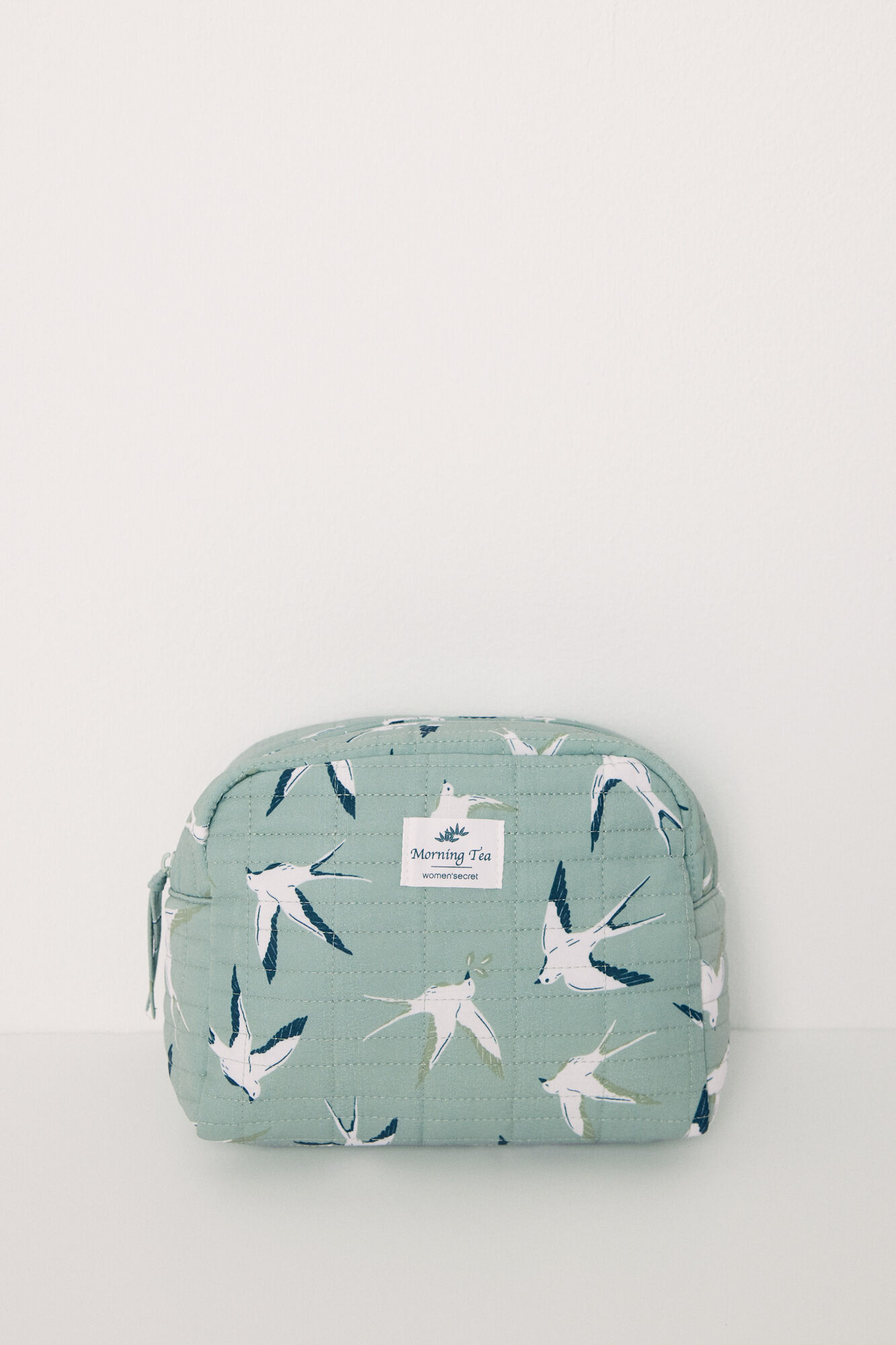 Large toiletry bag, with a padded texture, in green with a contrasting bird print . Ideal for carrying your beauty essentials protected and organized! With top pocket fastening and label detail. Combine it with your matching pyjamas and trainers .