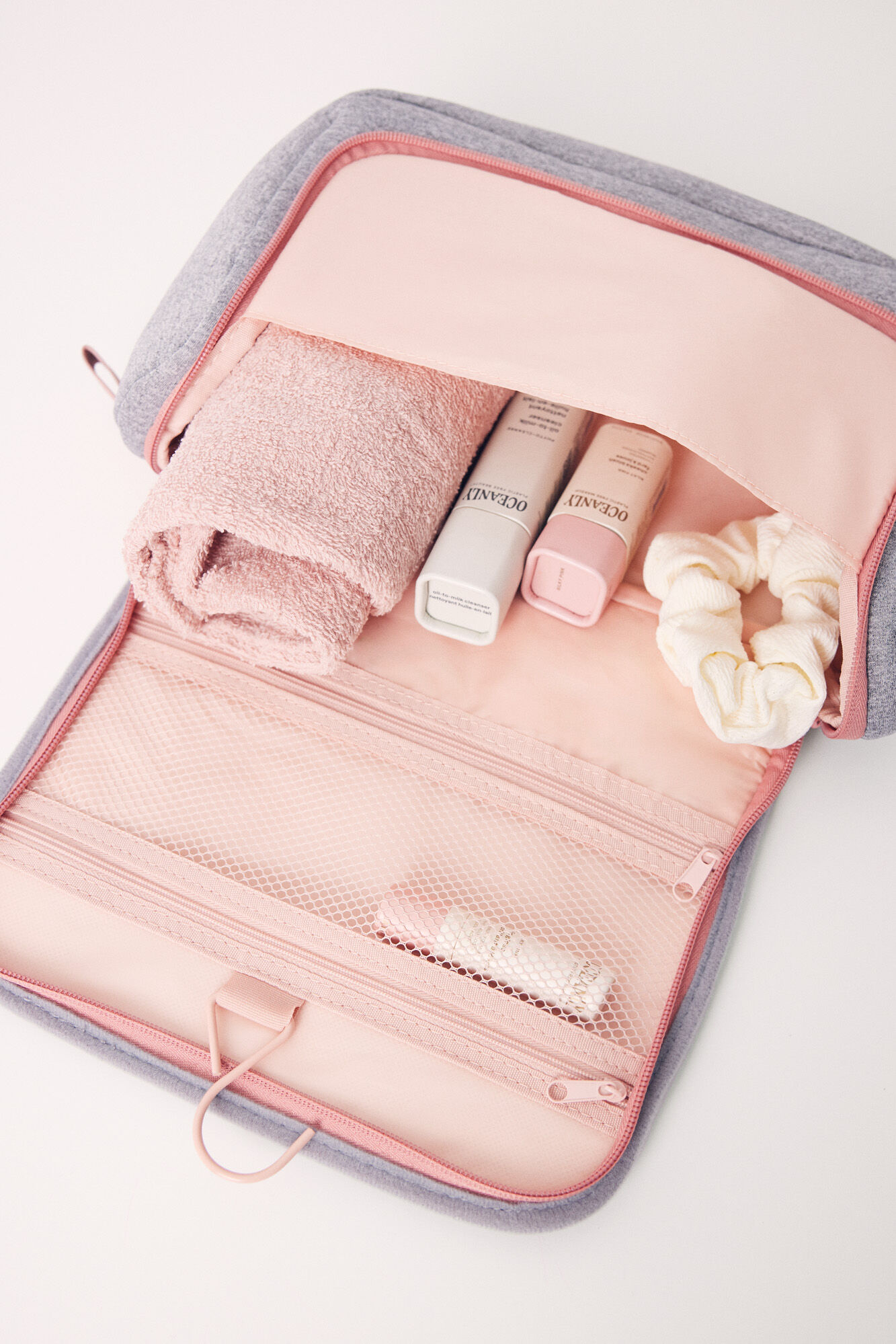 Large toiletry bag, with neoprene texture, full opening with double zip fastening, in gray with Snoopy prints. Ideal for carrying your beauty essentials protected and organized! Combine it with your matching pyjamas and trainers .