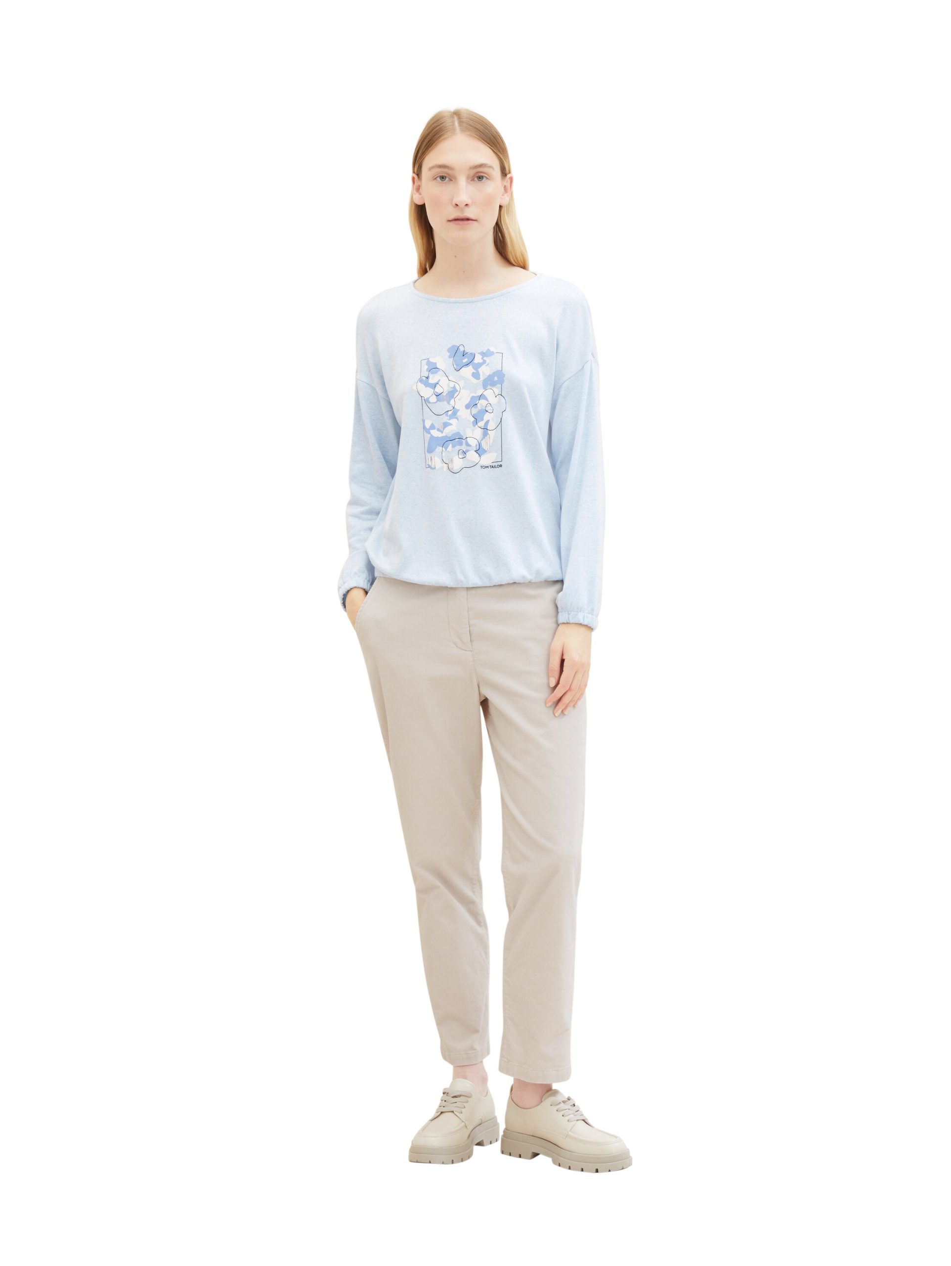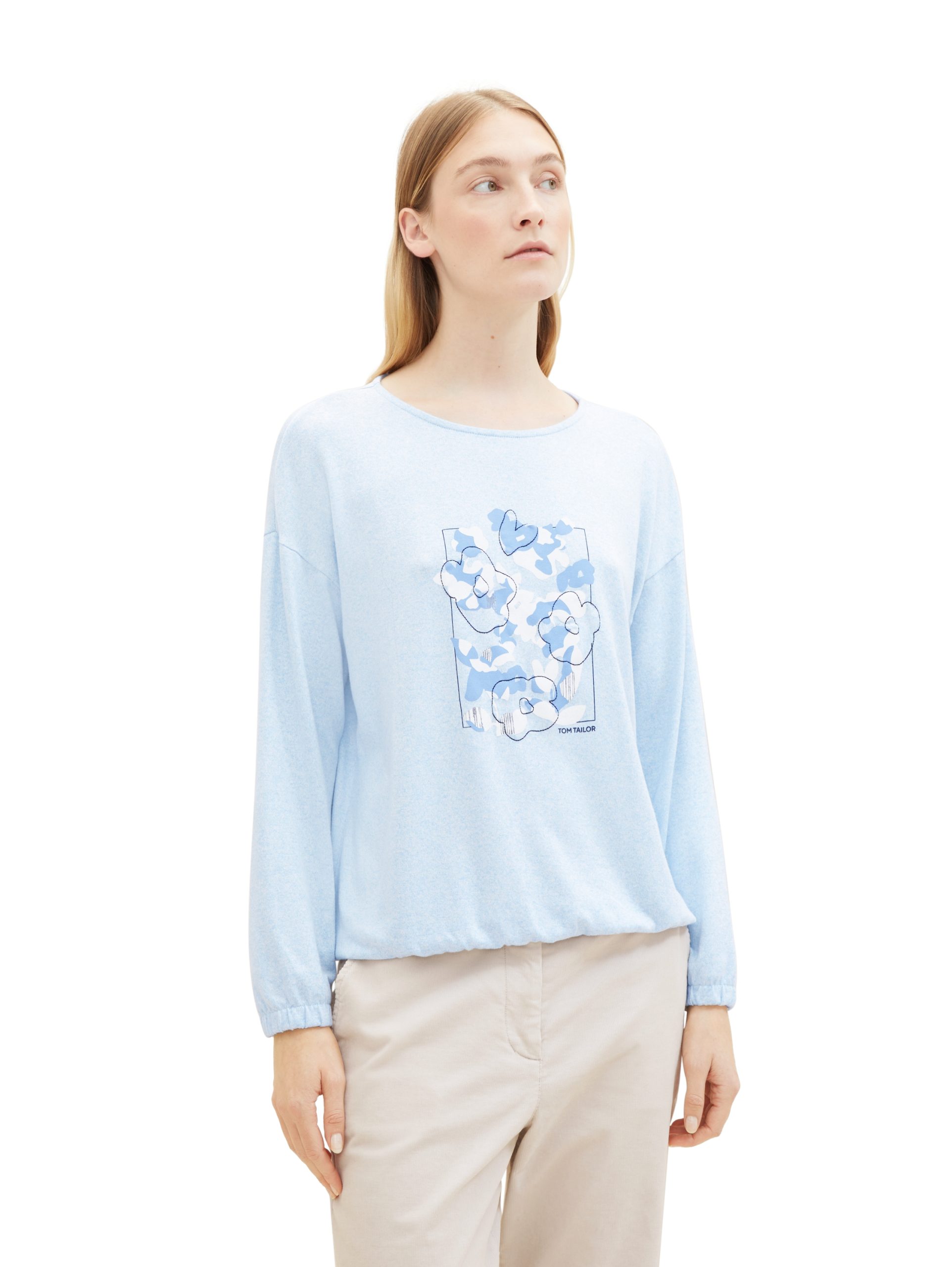 * long-sleeved with a round neckline