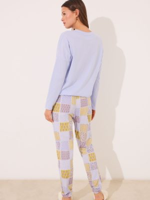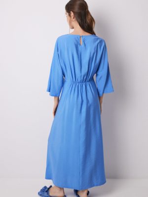 -70%Long caftan-style dress, in satin fabric with a floral jacquard effect, in blue. Ideal as a dress or to wear at home. You choose!