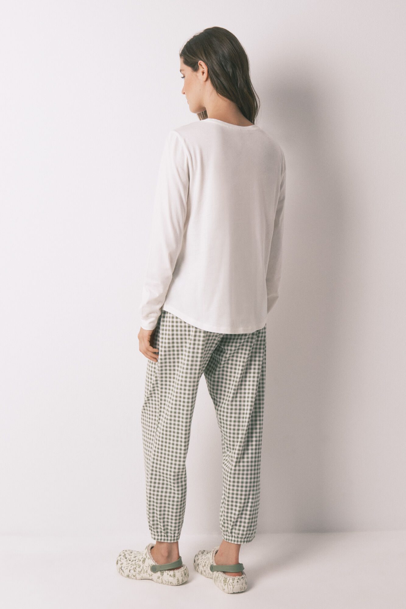 -30%بيجاما طويلة مصنوعة من القطن 100%. توب سادة برقبة دائرية وأكتاف منسدلة وأساور أكمام وحافة دائرية وطبعة مافالدا في المنتصف الأمامي. يتميز البنطلون بطبعة مربعات شاملة وحزام خصر مطاطي وفتحة وهمية مع زخرفة