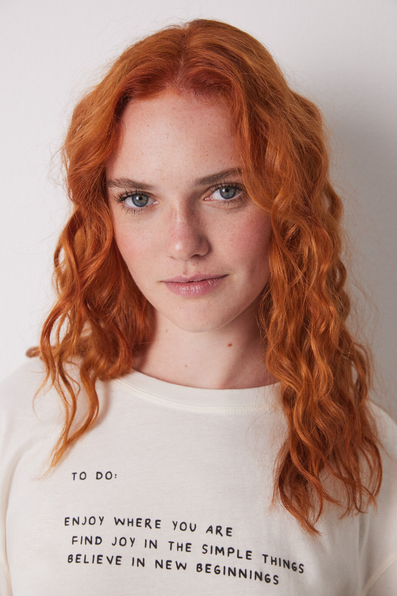 -71%long sleeve T-shirt , made of 100% soft cotton fabric , in white with a front print of Snoopy. It’s so practical and comfortable that you won’t want to take it off all day long.