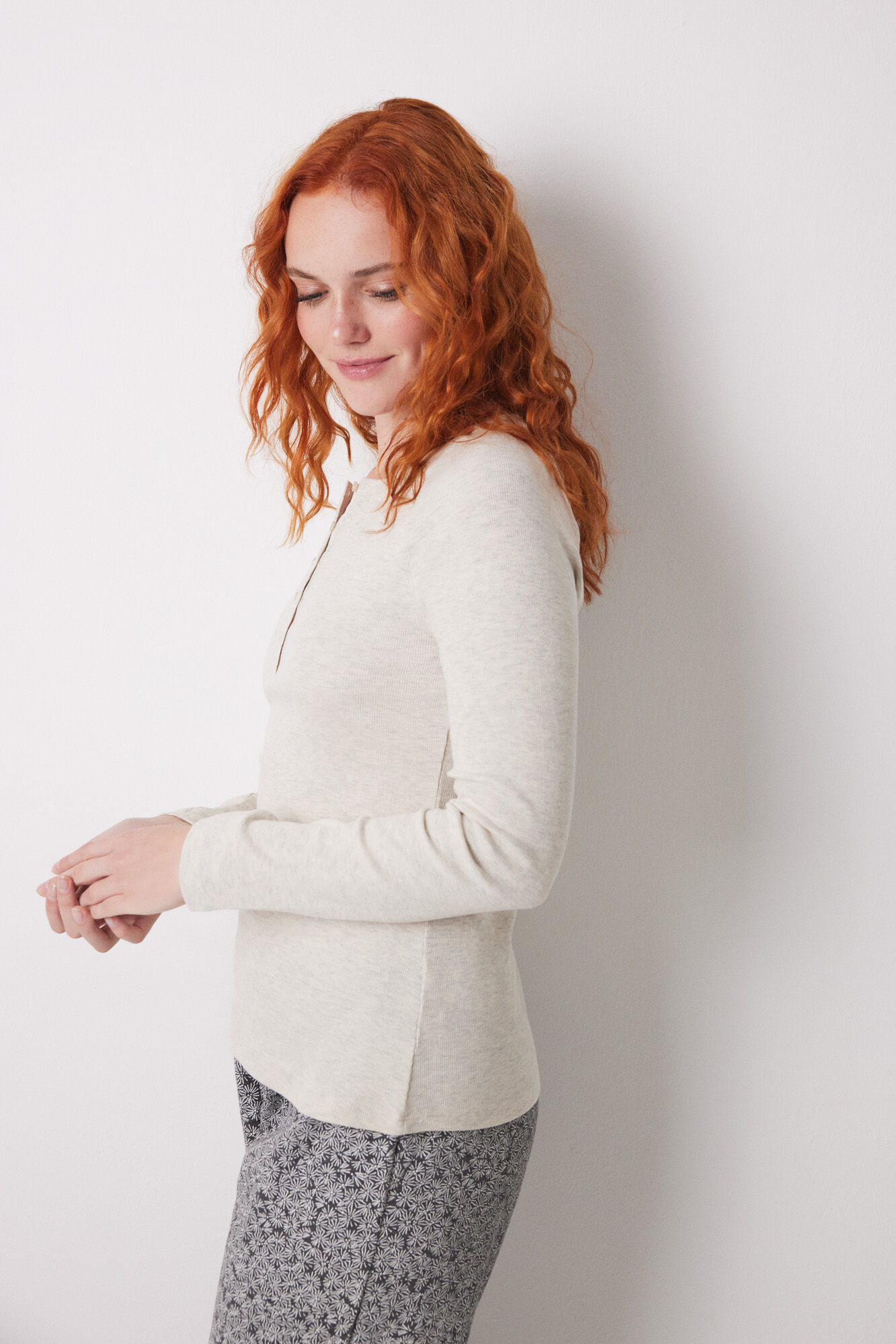 -71%Long raglan sleeve T-shirt in ribbed cotton fabric , plain in sand color. It is so practical and comfortable, you will not want to take it off all day.