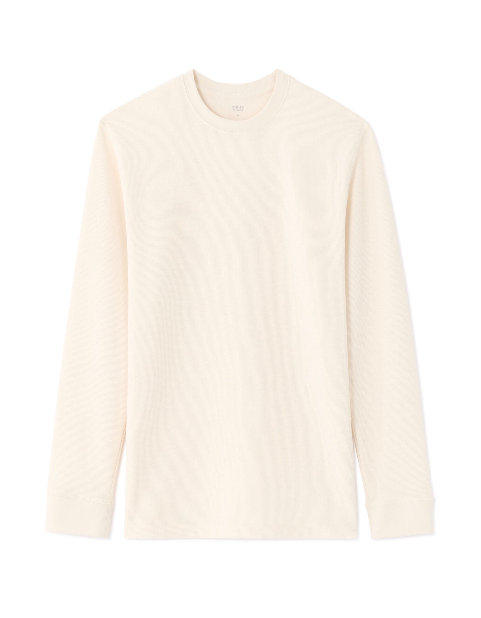 Opt for a relaxed and original style with this long-sleeved t-shirt, perfect for elevating your look. Beige long-sleeved t-shirt, boxy fit, soft feel, crew neck, textured fabric with zigzag stitch pattern, sleeves