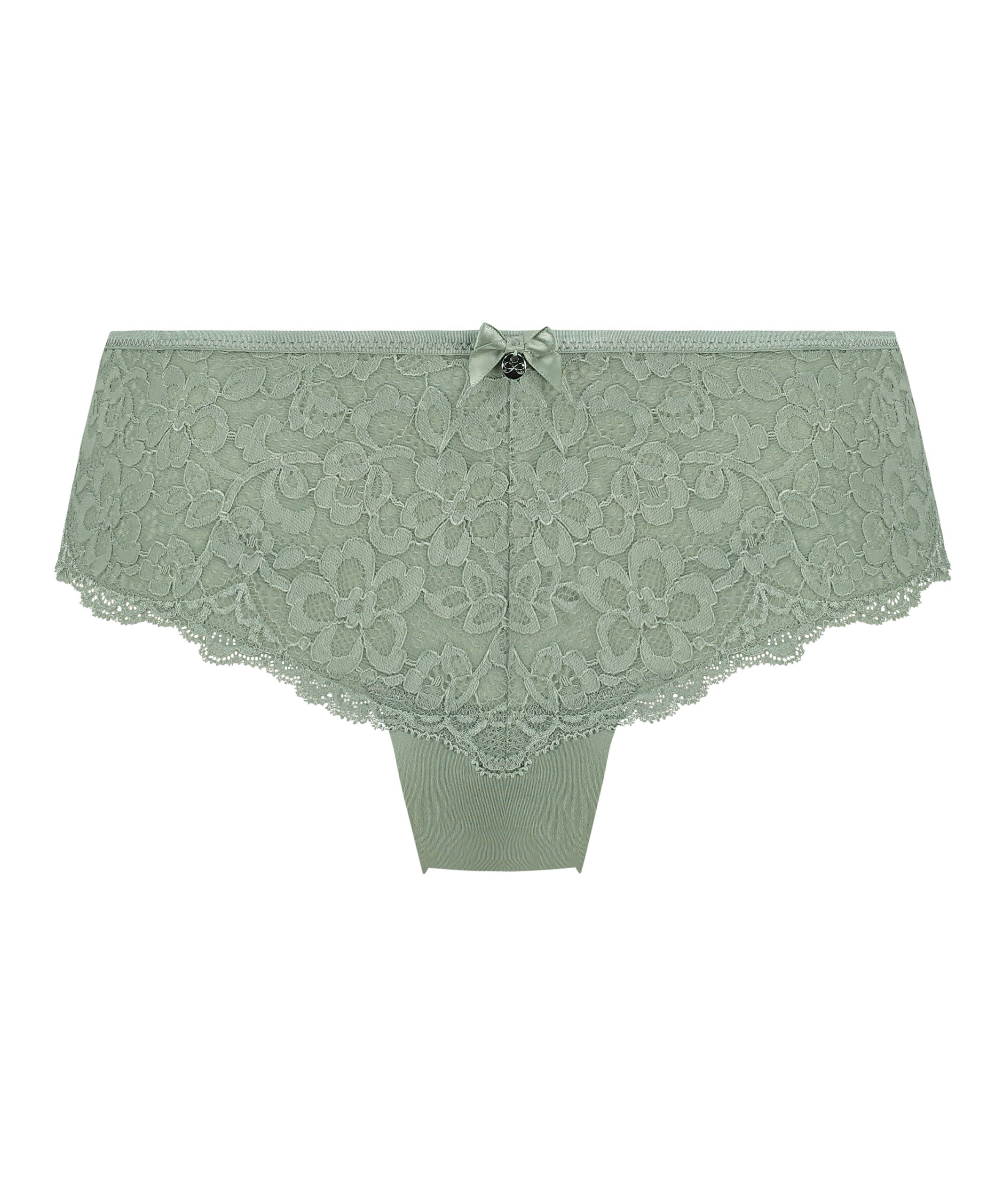 These Brazilian knickers are finished with all-over lace for a super sexy look. A small bow in the middle adds a finishing touch. Combine with the matching bra for a complete look.