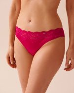 -59%The trendy, flattering Brazilian panty cut gets a cute upgrade! Shiny microfiber and floral lace add delicacy to this elegant piece.