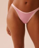 With this thong panty, you’ll enjoy the comfort of soft, stretchy microfiber and the elegant touch of a delicate lace trim. The elastic waistband is designed to move with you and hug your curves perfectly.
