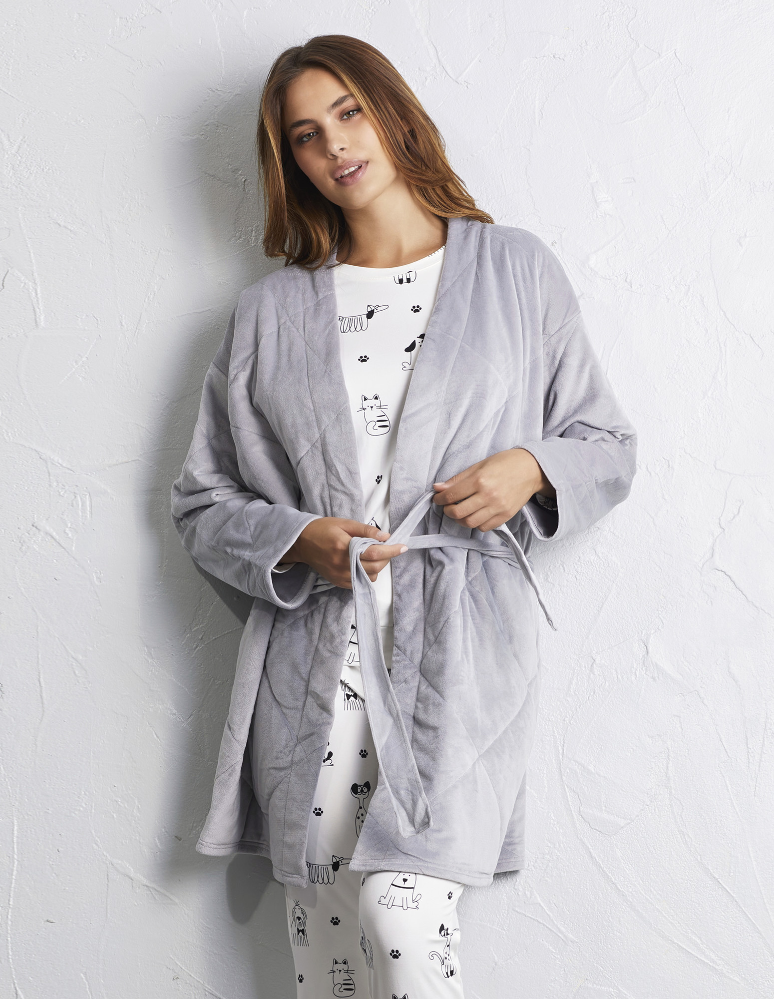 Wrap yourself in elegance with the new chenille dressing gown from the Chenille line, perfect to enjoy relaxing moments at home. With its contemporary and glamorous design, the elegant sand color or the timeless gray, it offers an unmatched comfort thanks