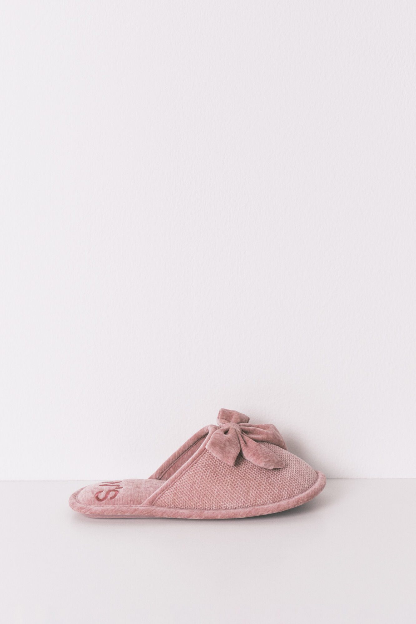 حذاء مغلق من الأمام باللونين الرمادي والوردي، مع فيونكة أو ربطة على الجزء العلوي. مصنوع من قماش الشنيل والمخمل عالي الجودة. مثالي لإطلالاتك الكاجوال أو الرياضية. خامة ناعمة ومريحة. نسّقيه مع إكسسوار من المجموعة.