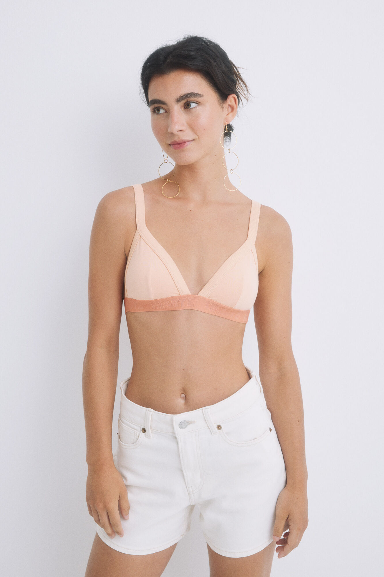 -61%Strappy triangle cotton bra with straps. In orange, with elasticated logo detail under the chest. Removable cups. Choose the shade you like the most (from a wide variety of options!)