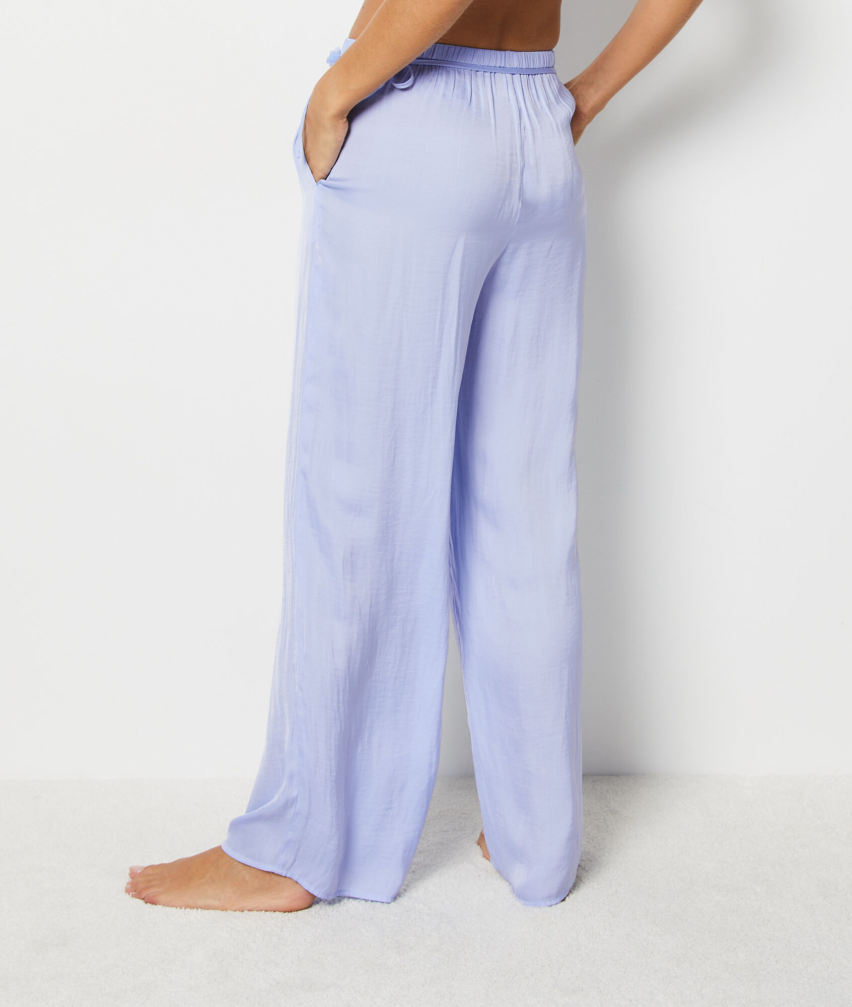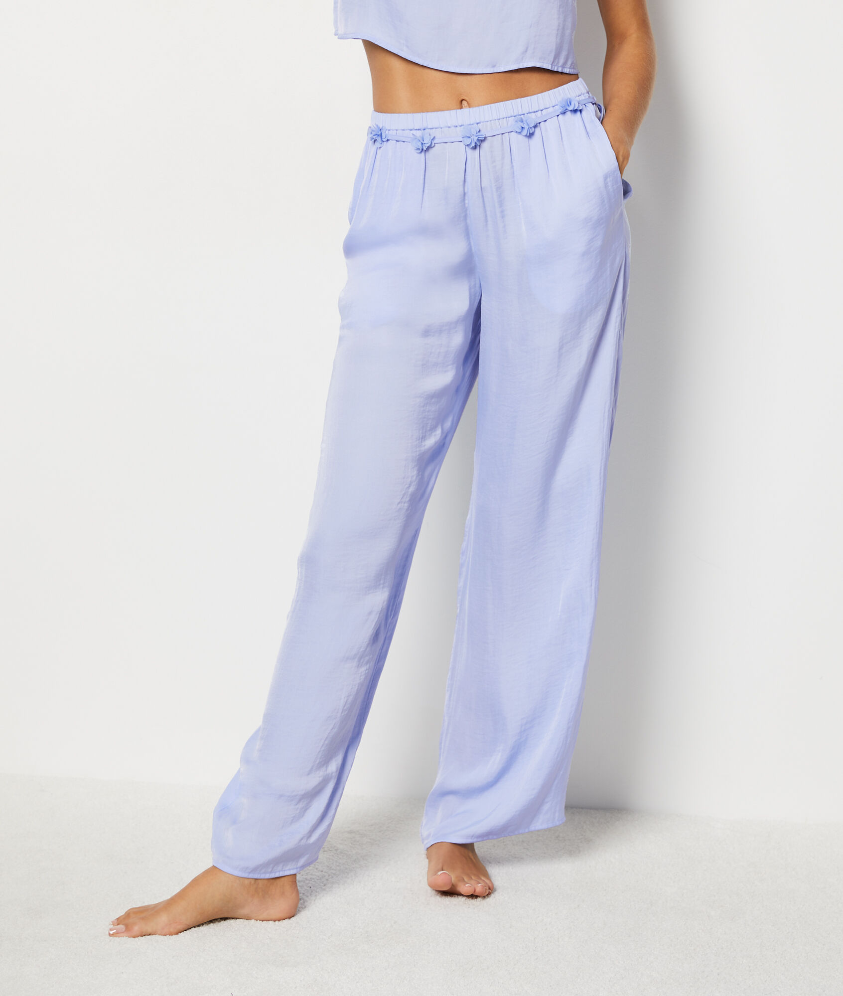 Light and silky, these pajama pants feature an ultra-comfortable wide cut, fitted at the waist with an elastic band. A row of flowers on this band adds a fresh touch to the look.