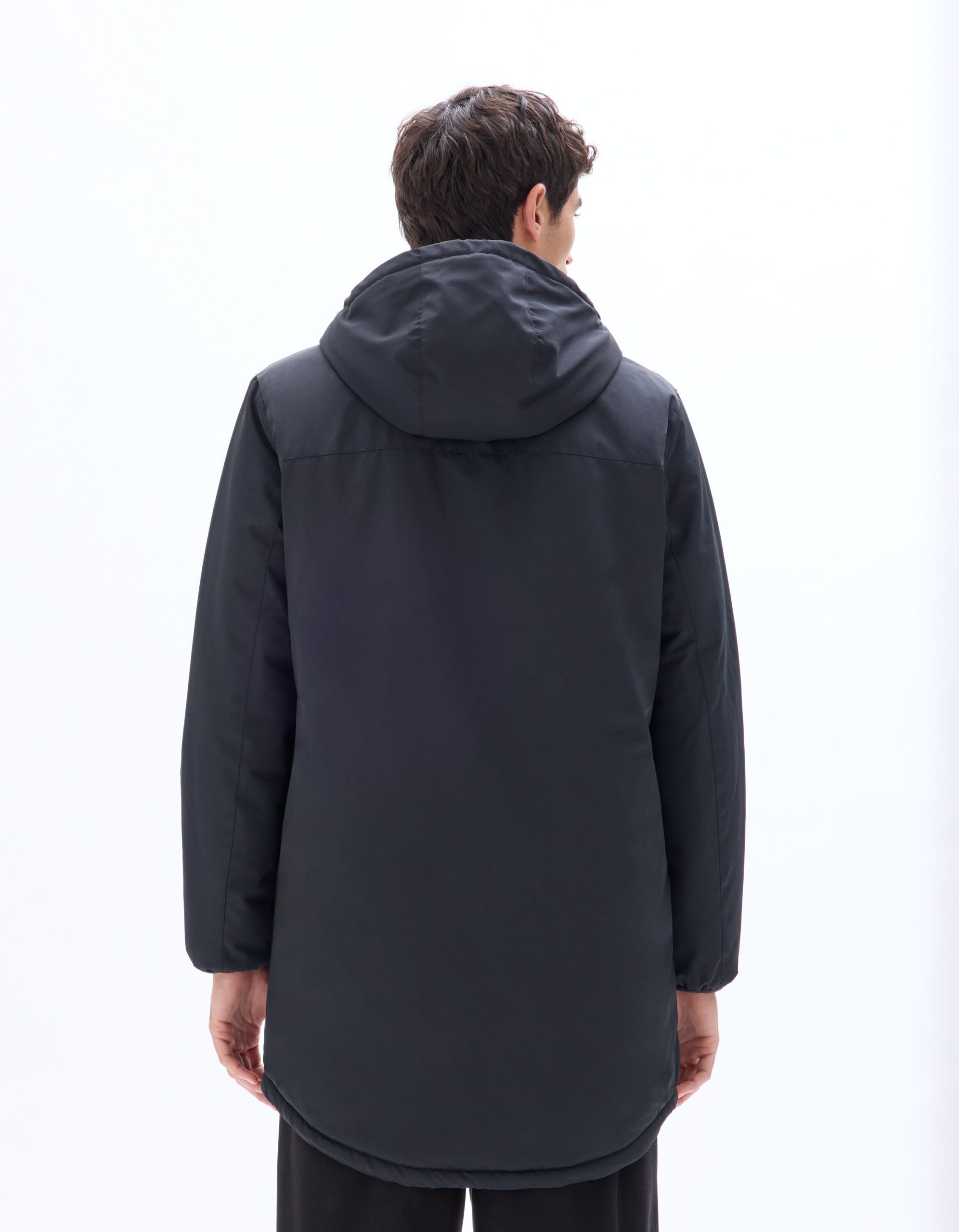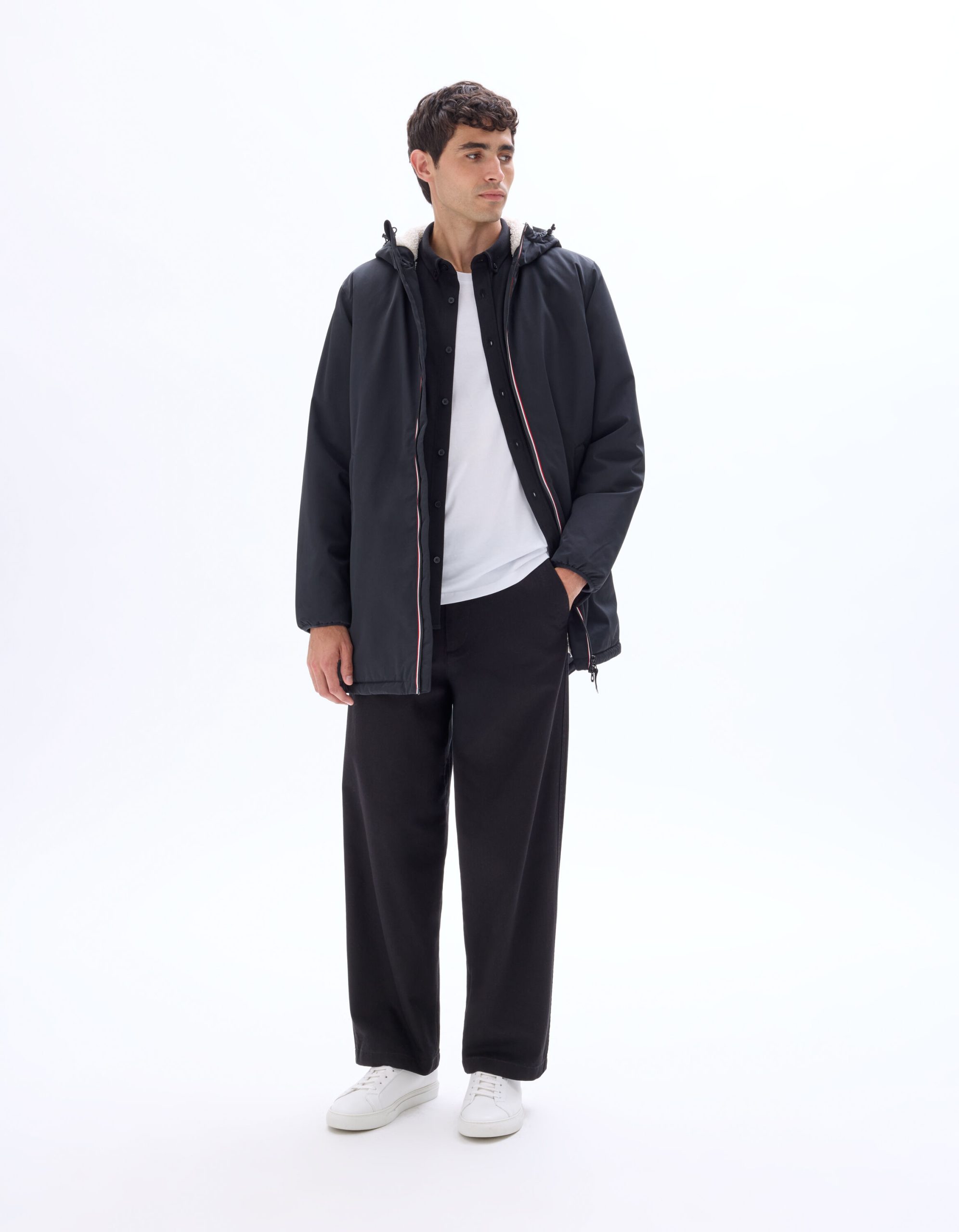 Make a bold statement with this parka, ideal for braving the winter chill. This men’s mid-length black parka features a hood, a soft and warm interior thanks to its full sherpa lining, and a comfortable, soft feel. It has a zip closure.