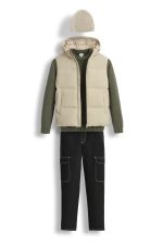 -51%Face winter in style and comfort, gentlemen! This thick, sleeveless men”s down jacket in beige is ideal for cold days. Beige, thick, sleeveless down jacket with hood Sturdy zip fastening Convenient inner snap pocket to secure your belongings Durable d