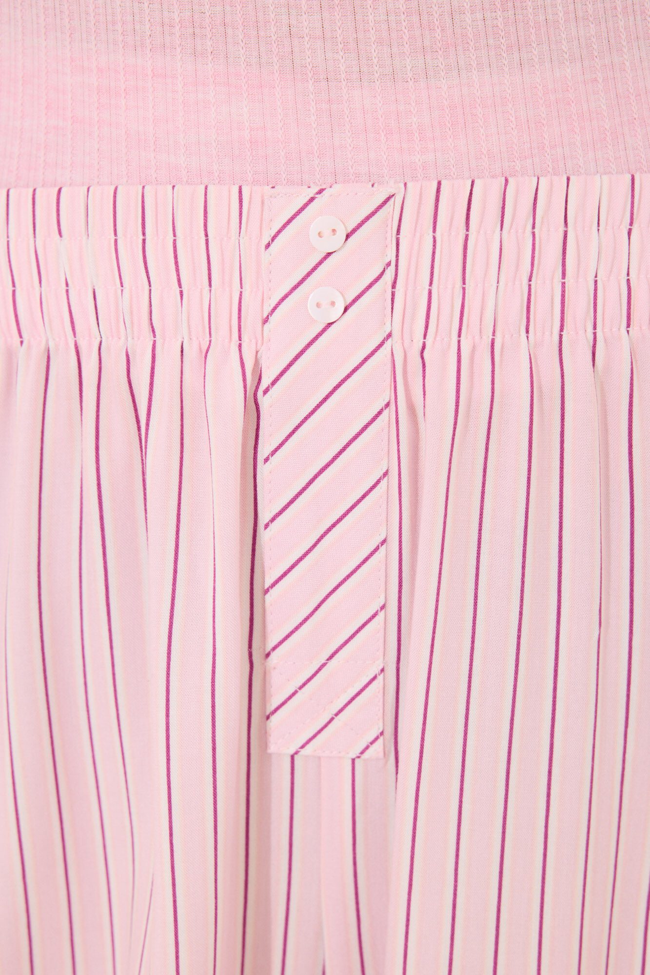 -69%Short sleeve pyjamas with long trouser , made from soft viscose fabric , with a plain pink ribbed T- T-shirt and trouser with a striped print . Ideal for staying at home in super comfort and style. V-neck T-shirt , matching buttons placket and embro