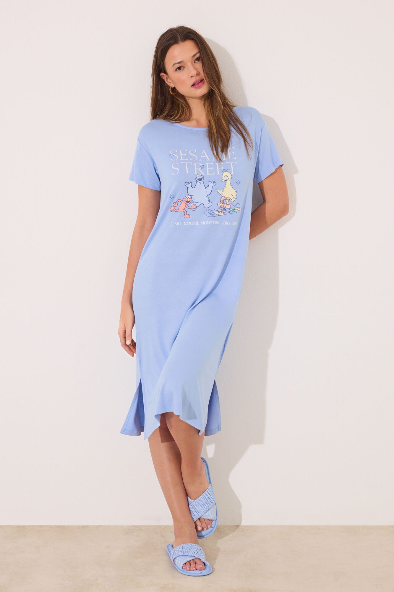 -49%Midi nightgown in super soft viscose fabric (soft touch), in blue, with a “Sesame Street” print in the center. It’s ideal for fans of the cartoon. Any nostalgic ones in the room?