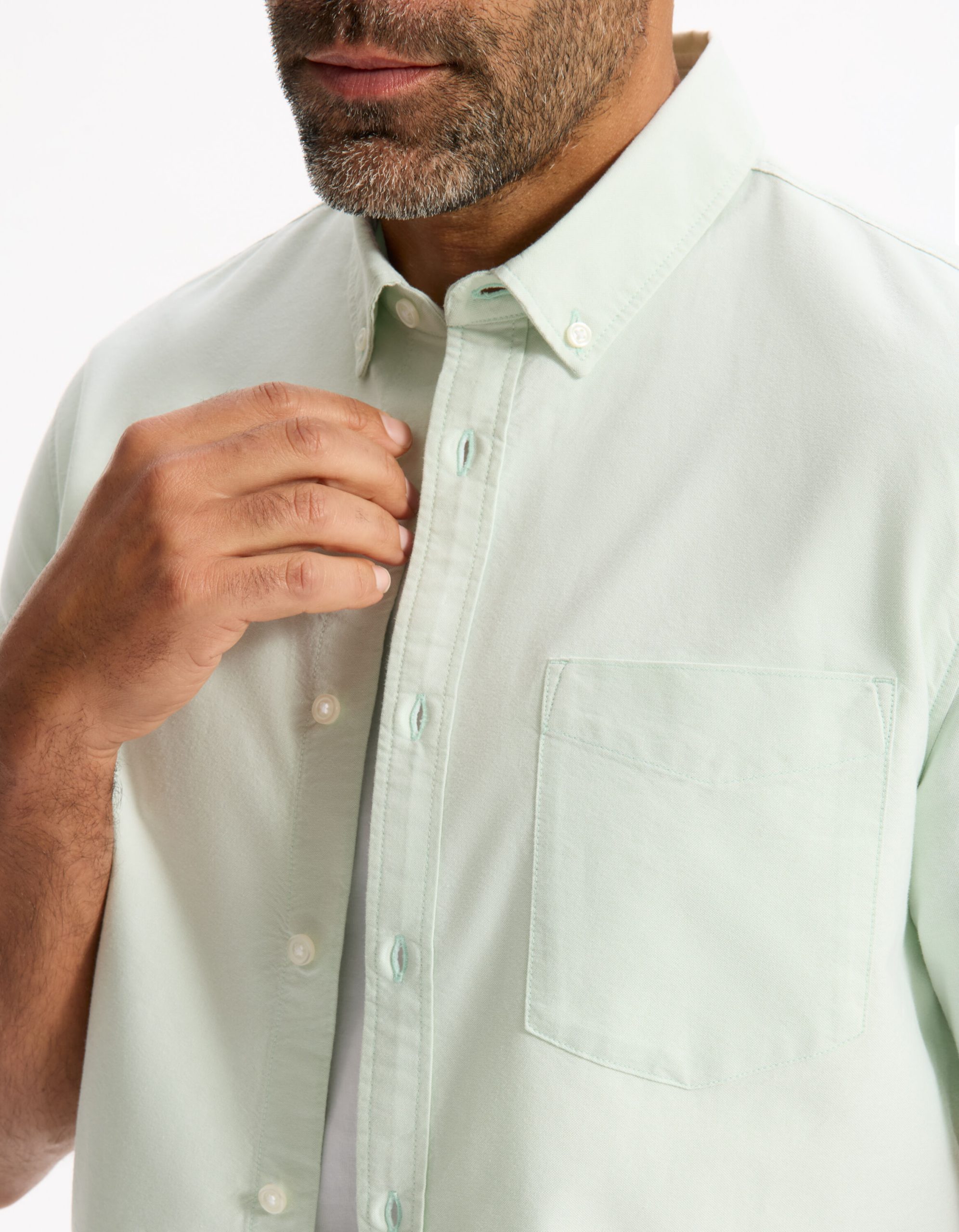 -70%Redefine your summer style with this short-sleeved oxford shirt, a must-have for the modern man. White oxford shirt Regular fit 100% Cotton Short sleeves Button-down American collar Perfect to pair with Bermuda shorts for a casual summer look Avail