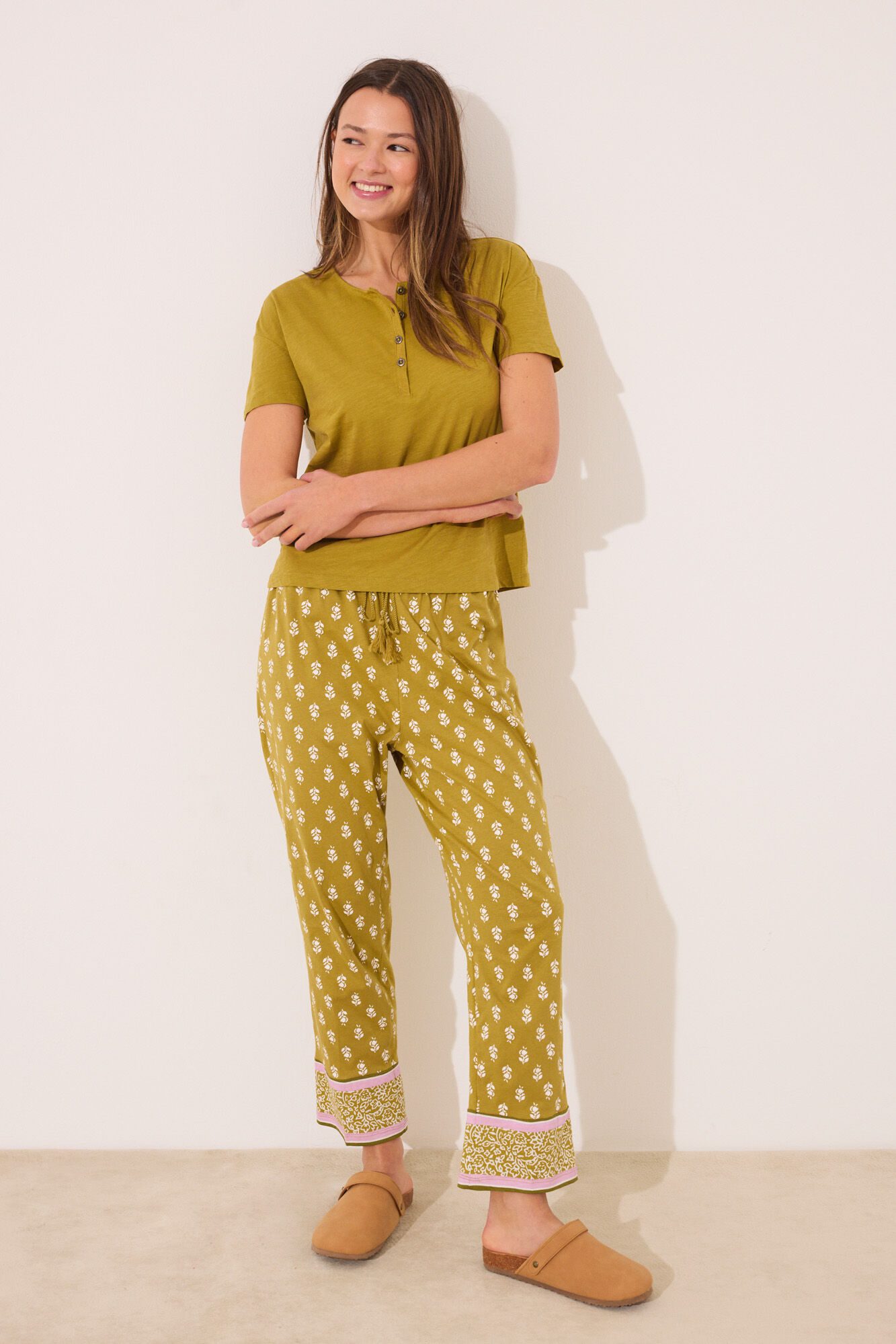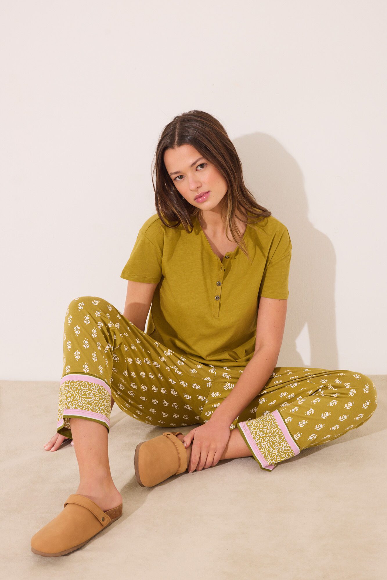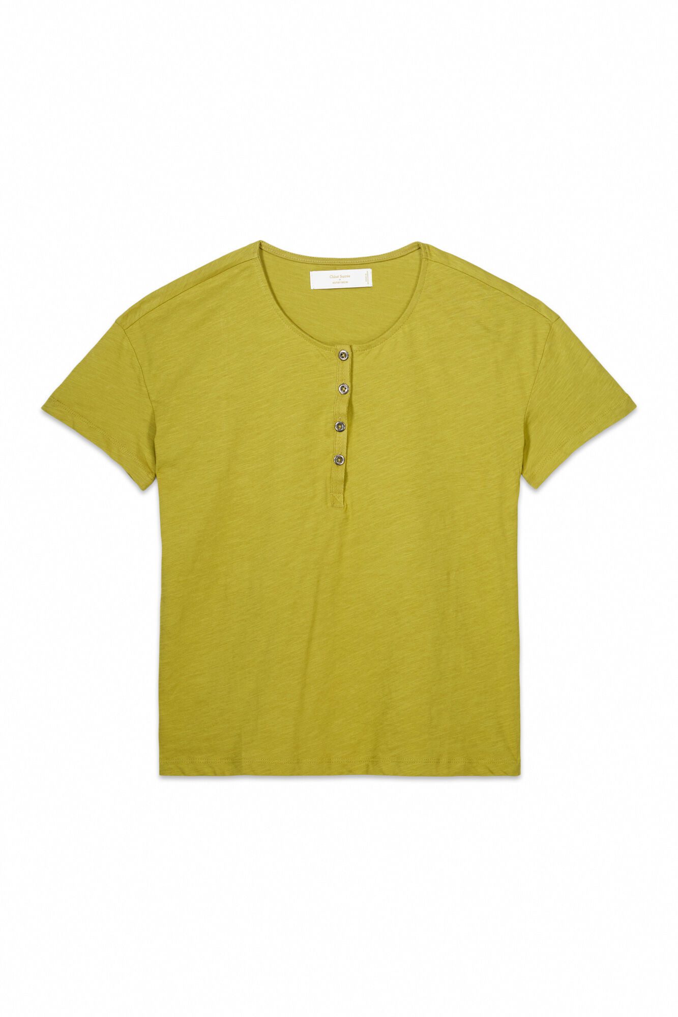 -70%Plain short sleeve T-shirt , fabric of 100% cotton, khaki. Wear it with the trouser from the collection you like the most and create your own combination. This way you multiply options! With a round neck and a front placket with metal buttons . <br>
