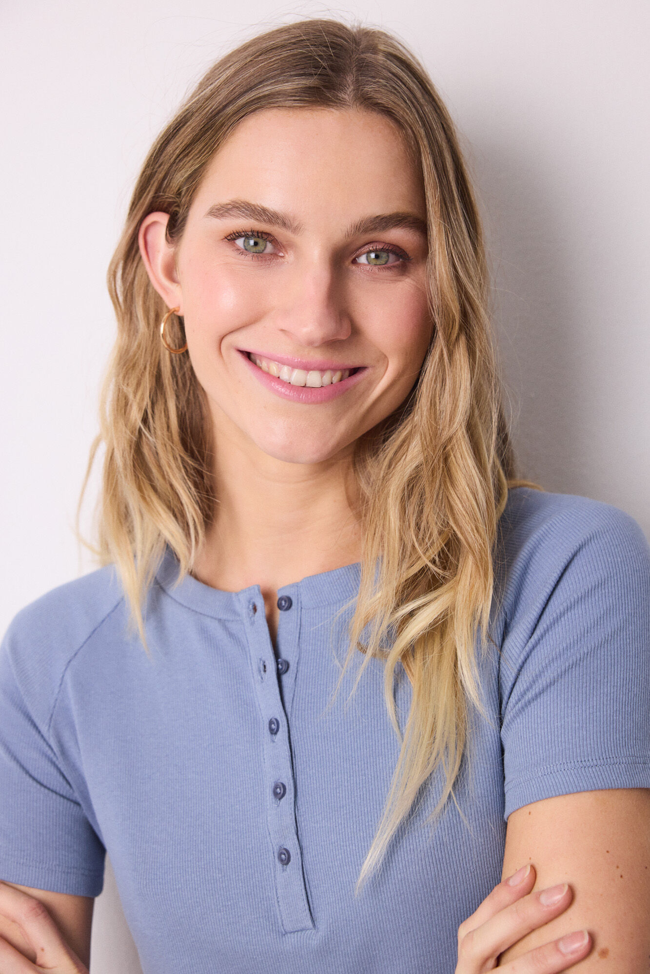 -71%Short raglan sleeve T-shirt , in ribbed cotton fabric , plain in blue. It is so practical and comfortable that you will not want to take it off all day.