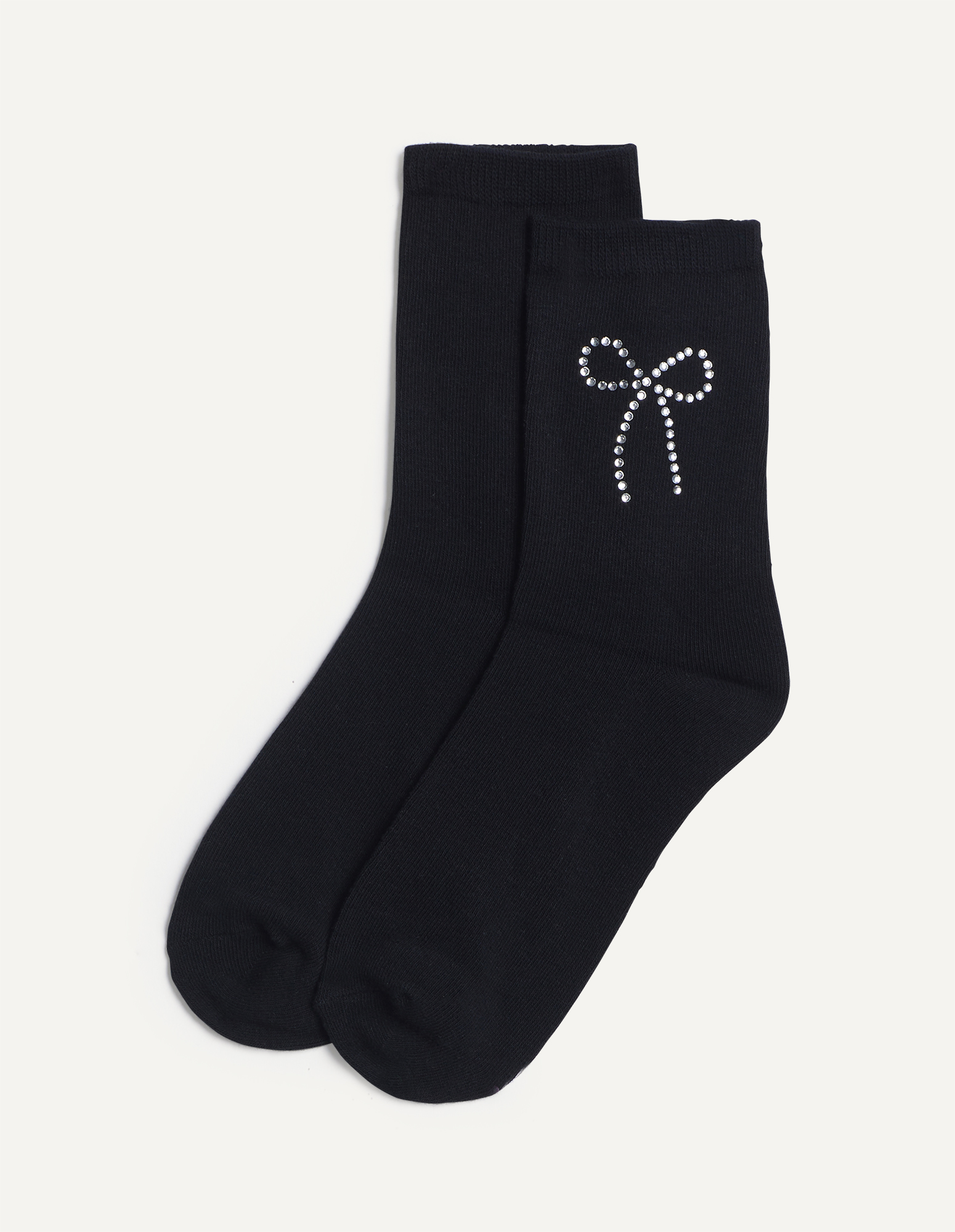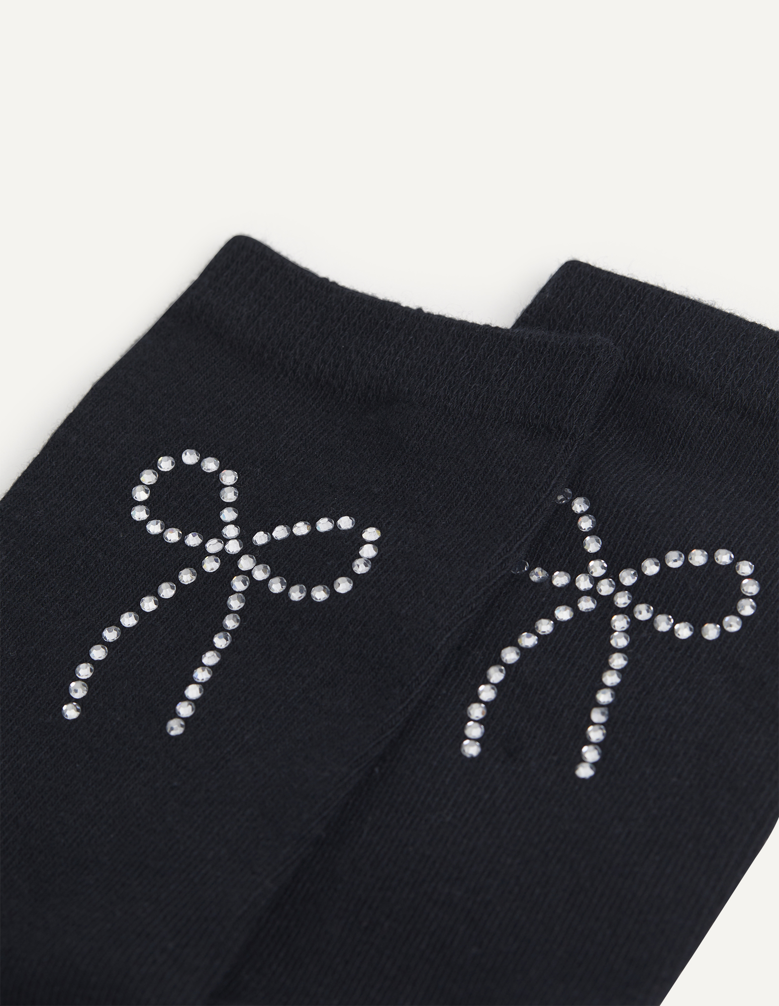 Short socks in soft and warm knit. Elegant bow detail with rhinestones. Comfortable and gentle on the skin. The accessory that will make every look unique.