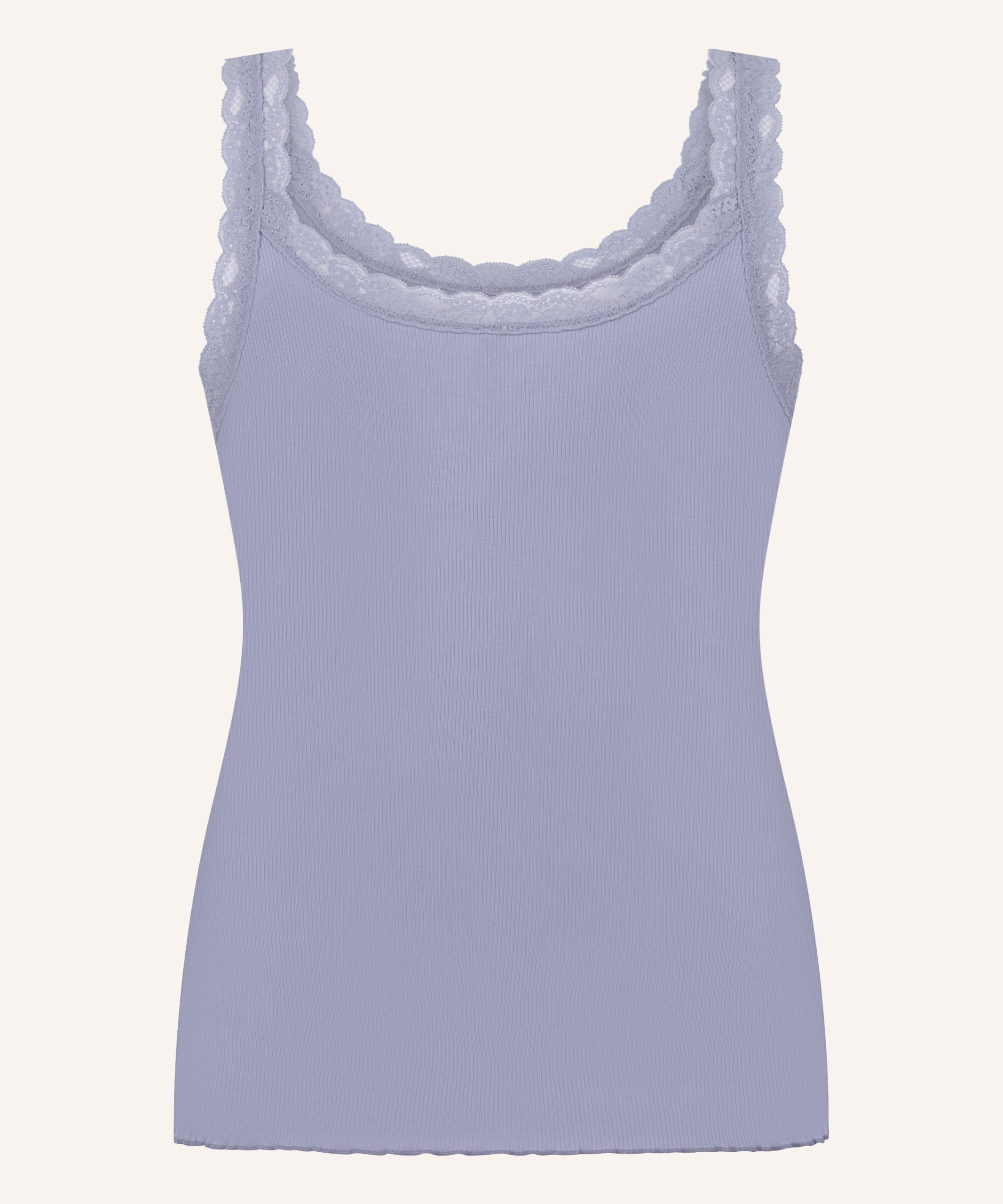 Add a touch of elegance to your everyday pyjama essentials. Made from soft, stretchy ribbed fabric, it hugs your body comfortably while offering a flattering, form-fitting silhouette. The lace adds a feminine, romantic details that elevates this simple piece. Perfect for lounging or a good night sleep.
