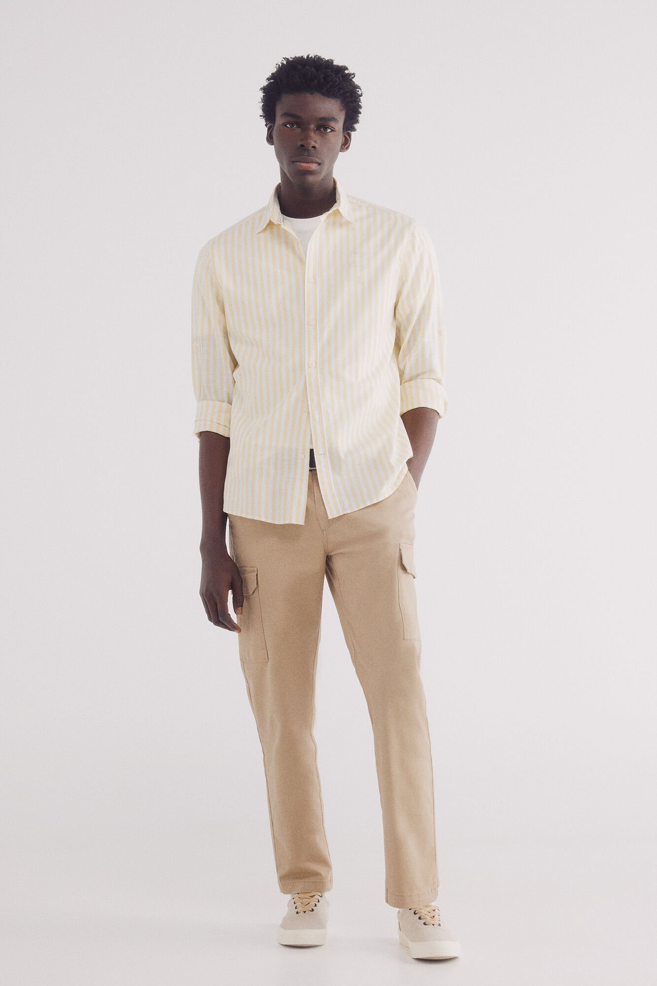 -70%regular fit long sleeve shirt in 100% cotton slub fabric. Tonal embroidered Springfield logo and pearlescent buttons.