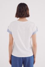 -71%Plain T-shirt with short sleeve , round neck, roll-up sleeve and a combination of fabric.