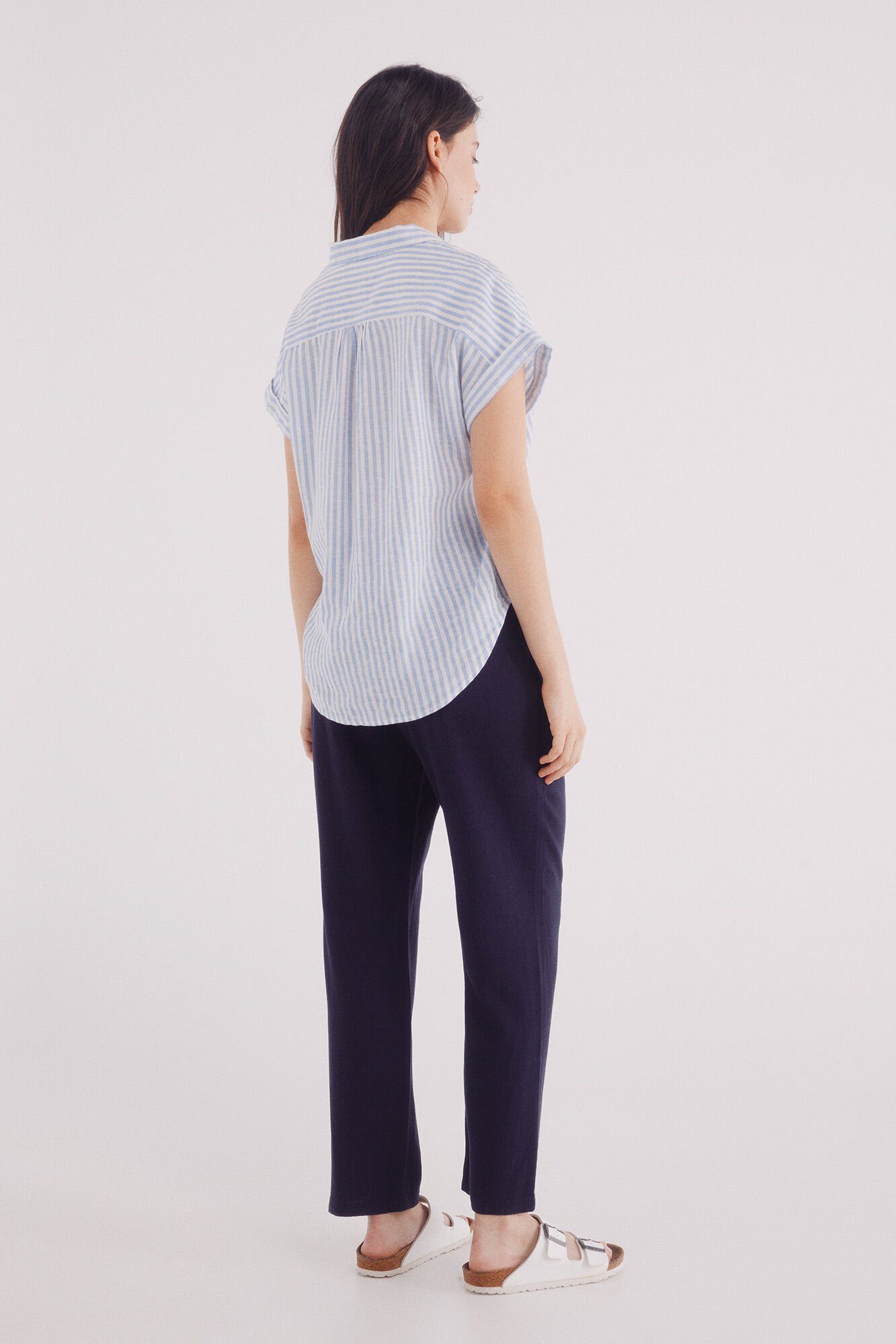 -70%High-waisted trousers with side pockets and a piping pocket on the back, with button and zip fastening fastening , with belt loops , and straight leg. In a linen and viscose blend.