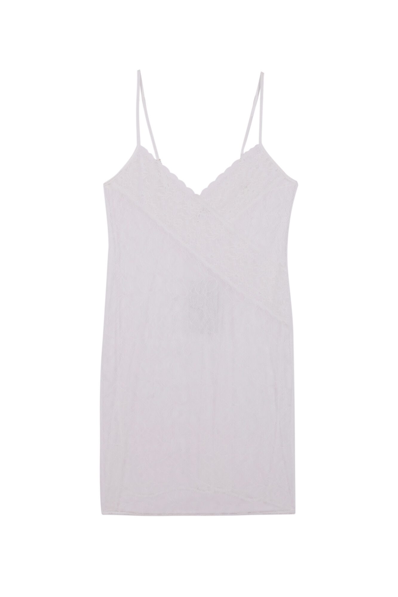 -70%Short nightgown with straps made of lace fabric . With asymmetric lace detail on the neckline and a beautiful drape, this nightgown is perfect for your most special occasions. Ideal for a nighttime look – before or after the wedding. Combine it with the m