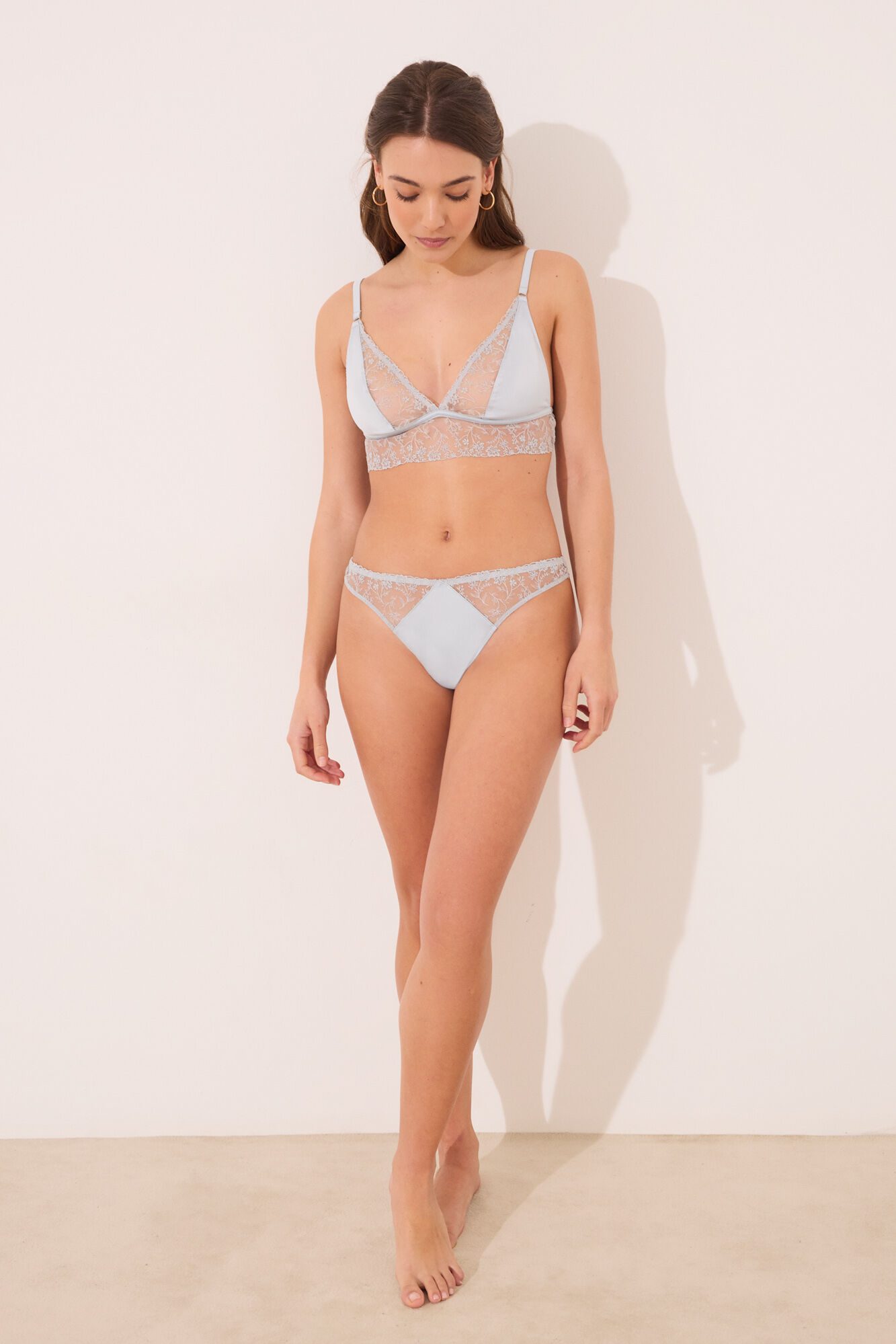 -69%Classic satin thong, in blue, with lace details and tulle details. Super feminine and comfortable design. Combine it however you like, with the bra you like the most. Exchanges or refunds can only be permitted for products with hygiene sticker