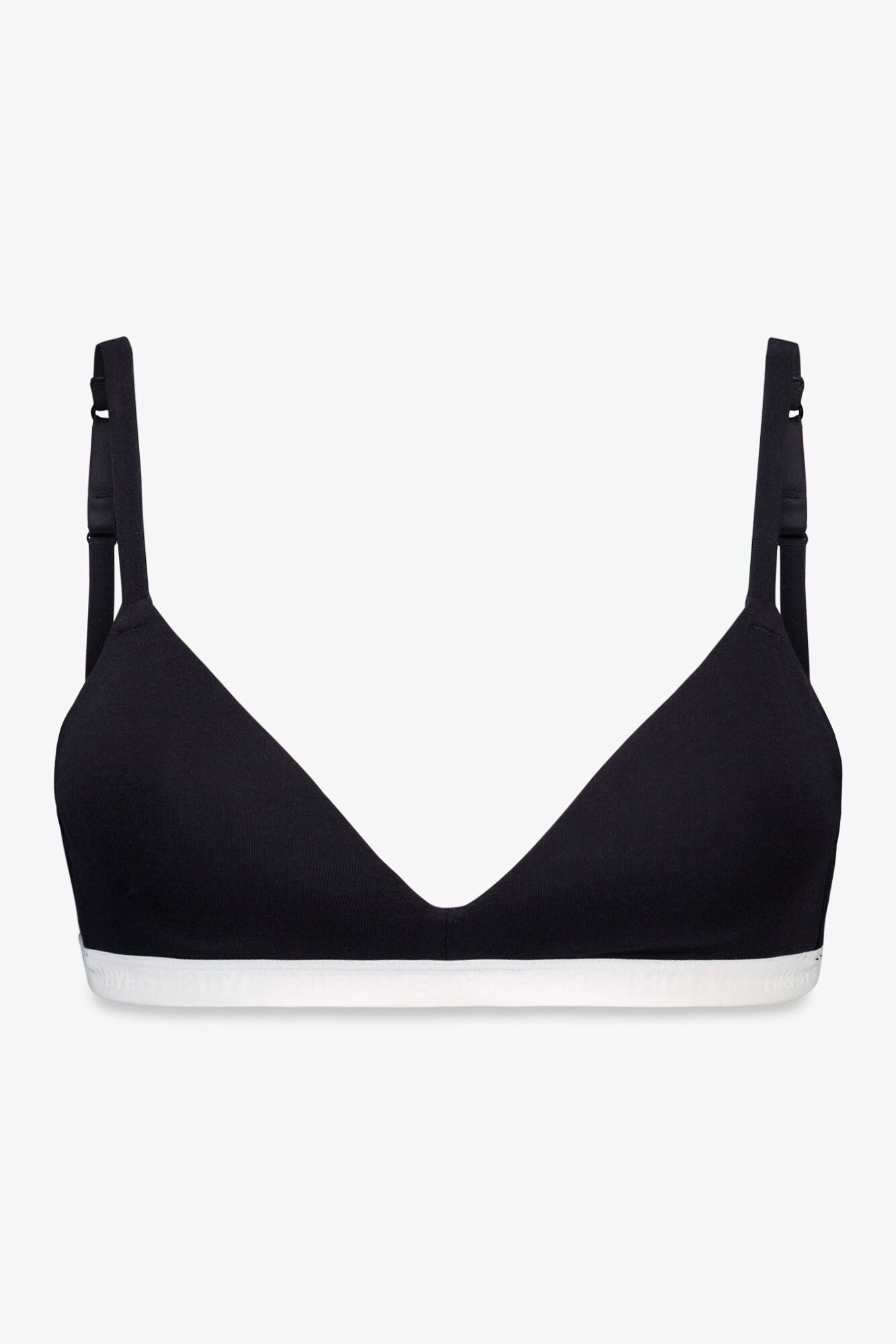 حمالة صدر مثلثة الشكل بإسفنج ثابت. مصنوعة من القطن بهيكل مضلع. حاشية مرنة عند الصدر أو الصدر أو الصدر مع شعار ماركة بنقشة الجاكار. اختاري لونكِ المفضل (لدينا تشكيلة واسعة من الألوان المختلفة!) نسقيها مع ملابسكِ المفضلة.