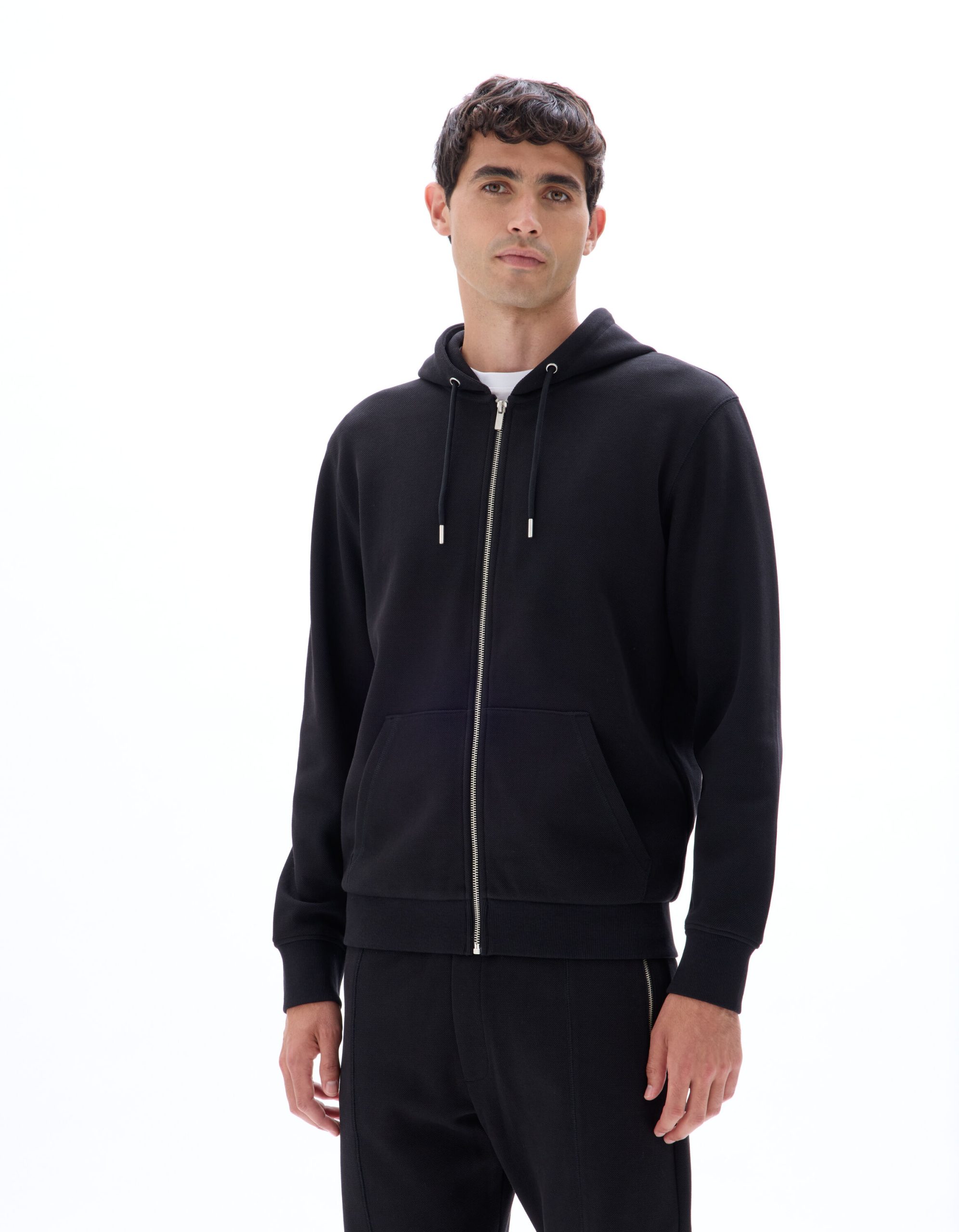 -49%A men’s sweatshirt that combines style and comfort. Plain charcoal pique sweatshirt Zip fastening Quilted material Long sleeves Hooded Kangaroo pockets Quilted texture effect Standard length Perfect for a casual look, pair with a t-shirt