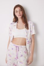 Shirt pajamas, consisting of a short sleeve shirt and long trouser , made with soft touch satin ECOVERO™ viscose fabric , in white with an all-over print of butterflies and flowers in lilac and pink tones. Super soft and comfortable, you won”t want to tak