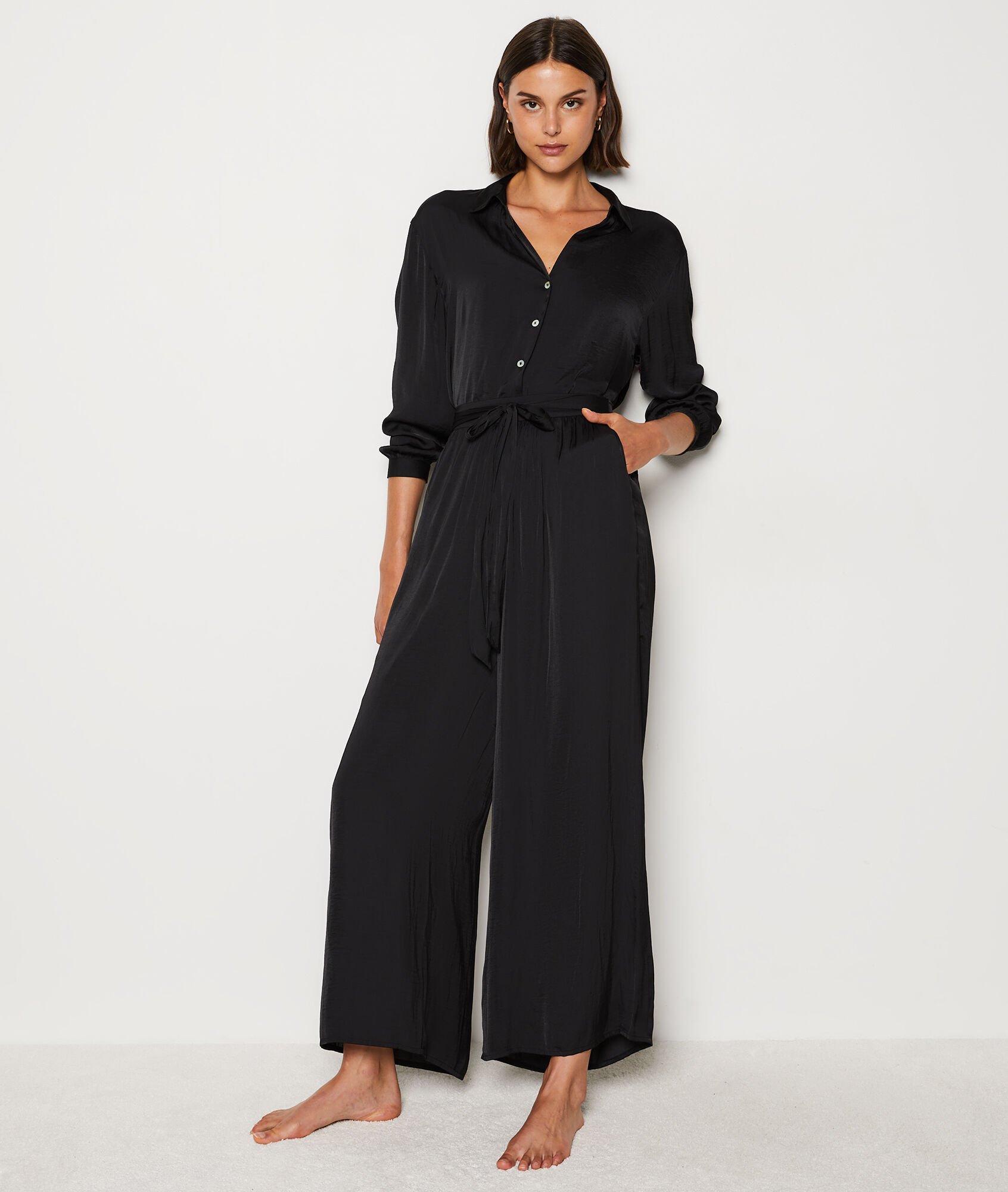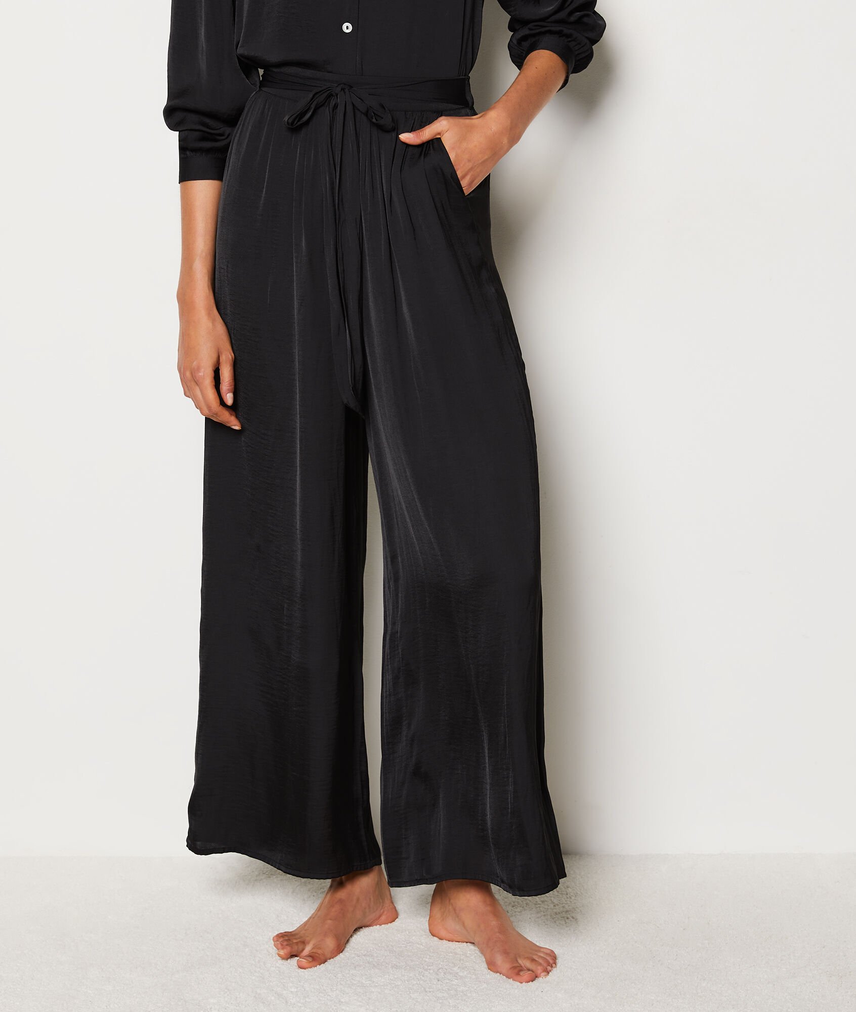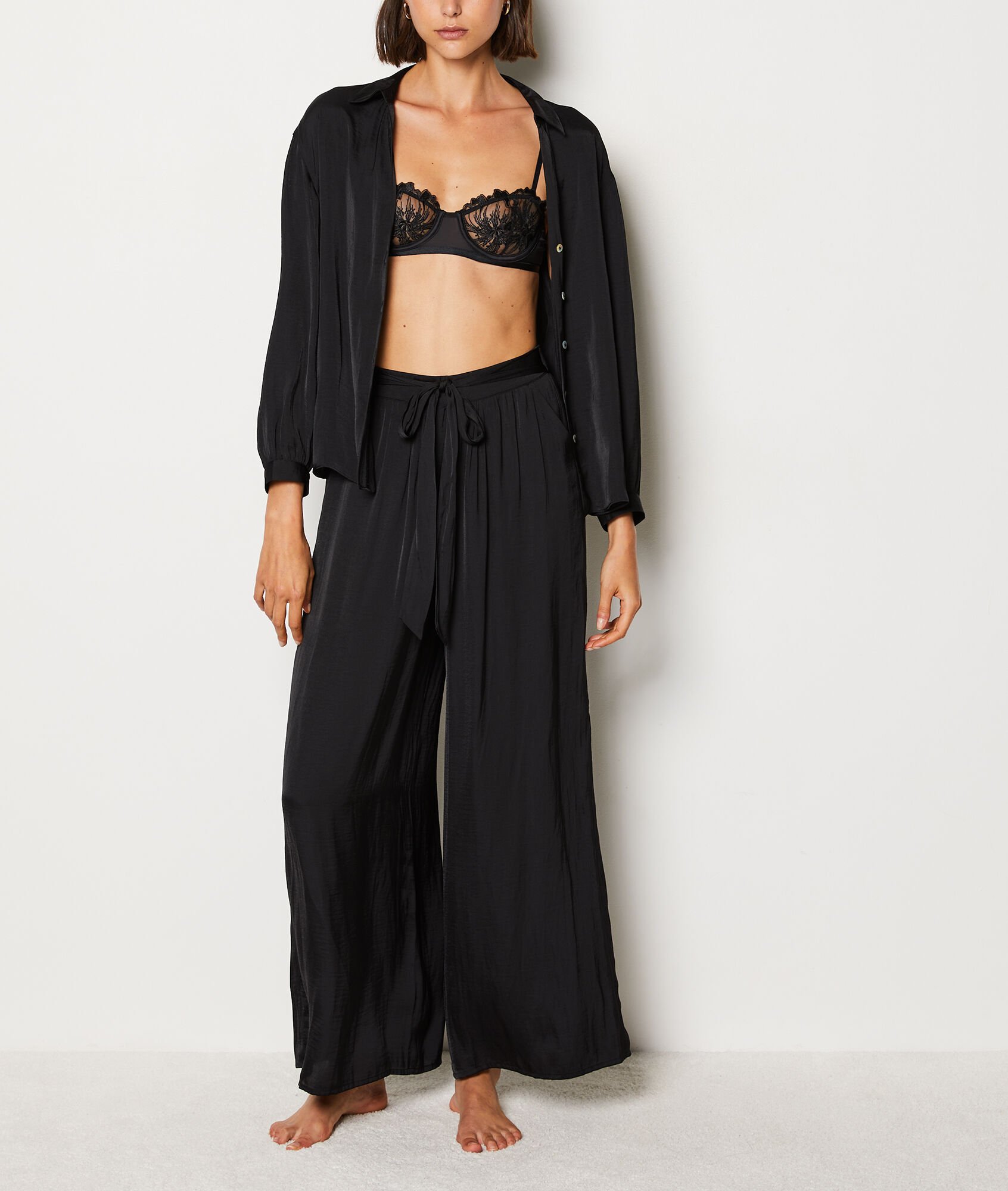 Fluid and wide, these satin trousers with a drawstring waist unveil an airy silhouette. Ultra-comfortable, they pair perfectly with the matching shirt.