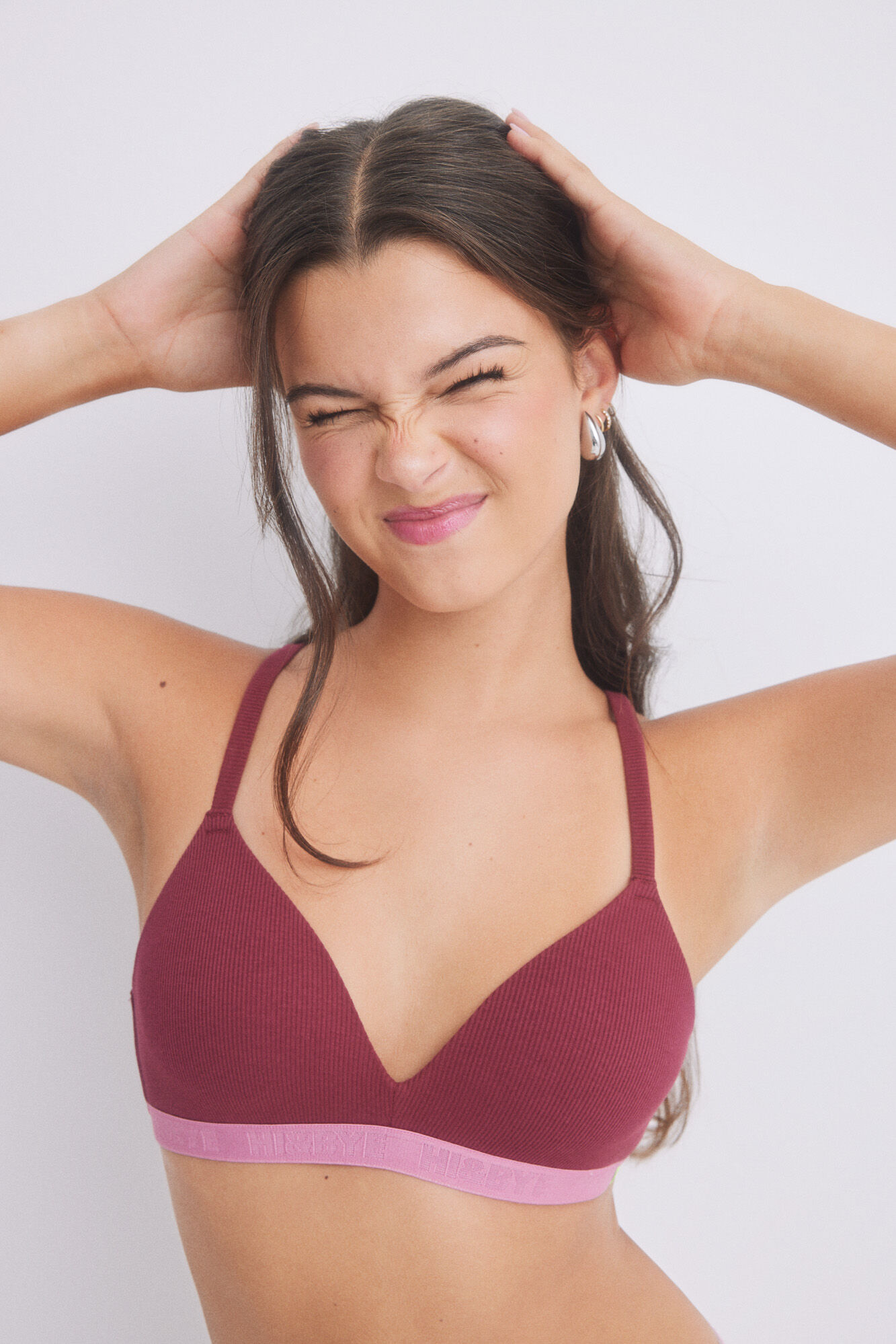 -60%Strappy triangle cotton bra with straps. In red wine with elasticated logo detail under the chest. With fixed cups. Choose the shade you like the most (from a wide variety of options!)