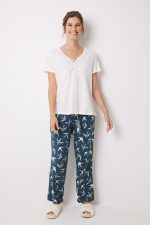 Short sleeve t-shirt, 100% cotton, in ivory color. Wear it with the bottom part you like the most, it has several matching ones, and personalize your pyjamas your way. V neckline with gathered detail and laces with matching tassels .
