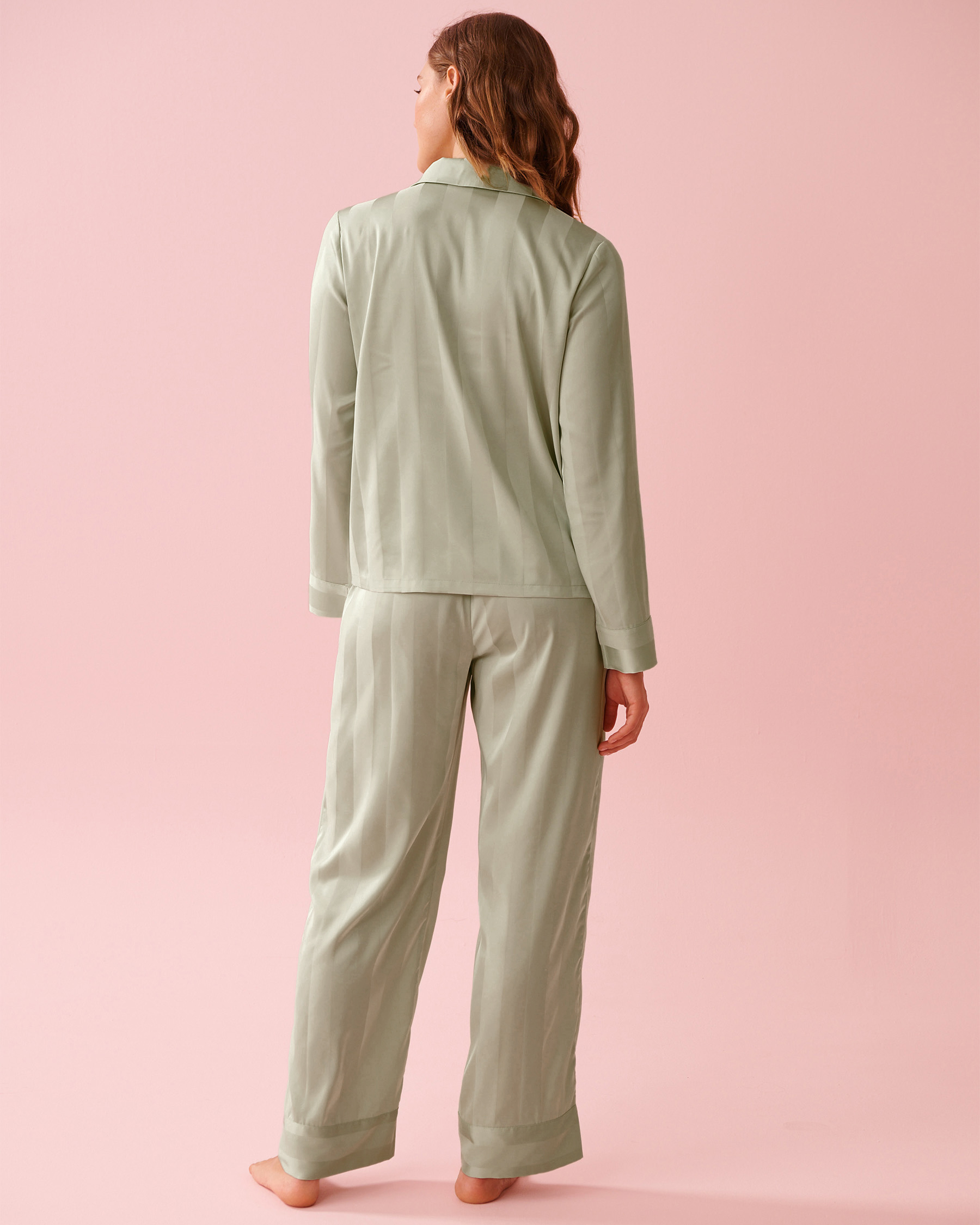 Long-sleeved button-front shirt|Pants with elastic waistband and side pockets|Michèle wears a size S|97% Polyester 3% Elastane