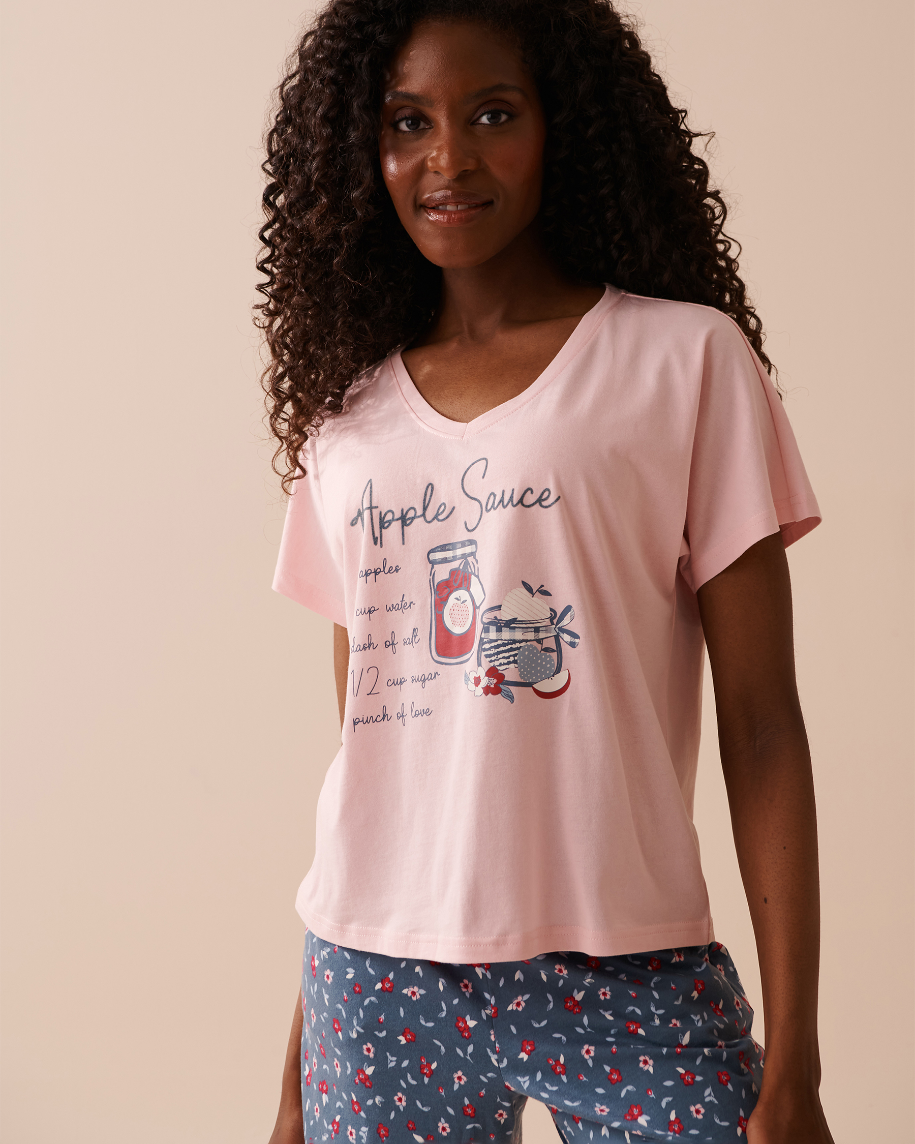 -69%Cotton is natural, comfy and can also be cute! With this lightweight, stretchy, and durable V-neck t-shirt and our mix-and-match options, create your new amusing apple-themed pajama.