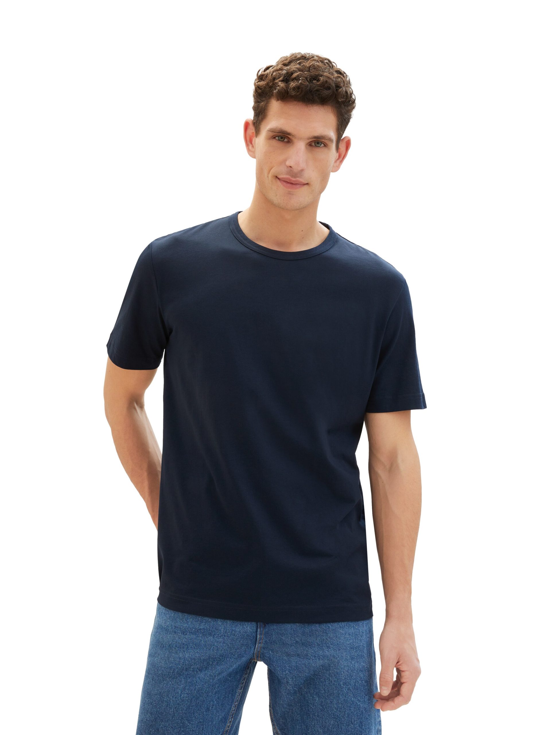 * short-sleeved with a round neckline