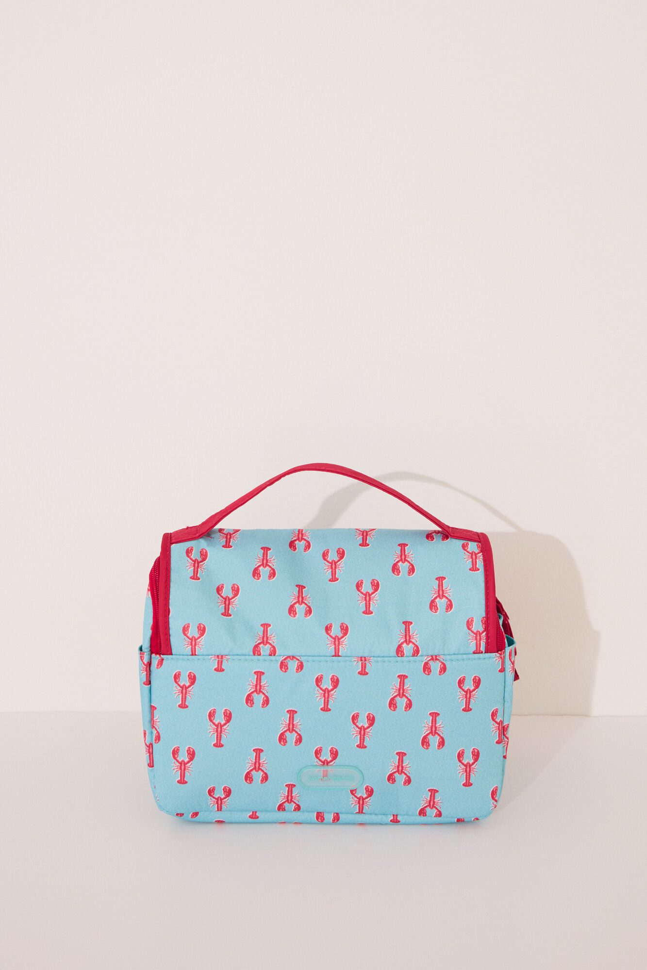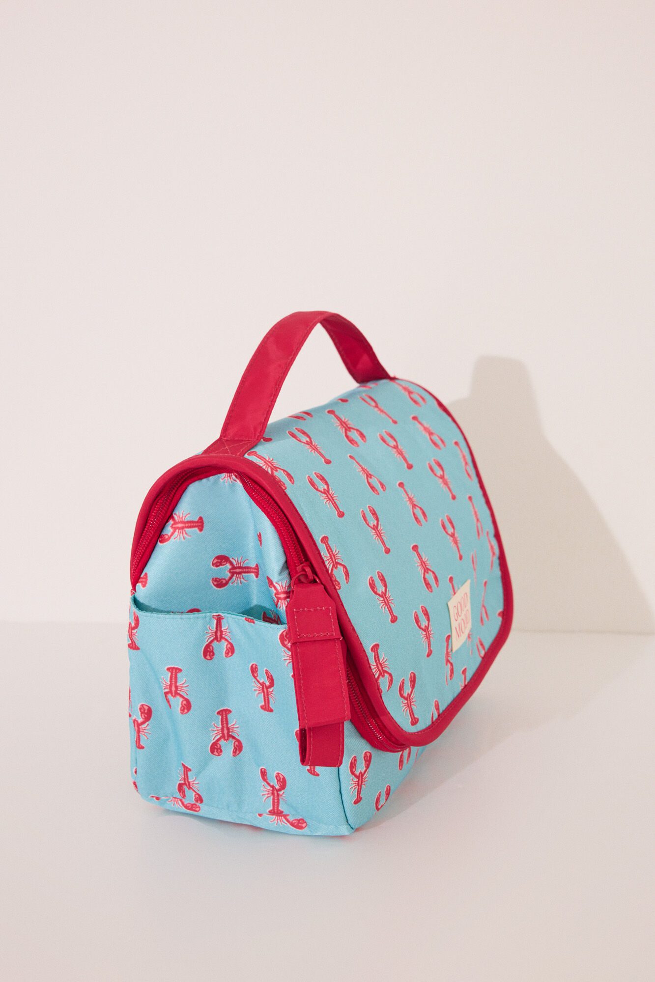 Large briefcase-style nylon toiletry vanity case with an allover print in red and turquoise. Designed to organize your accessories in a practical and stylish way. It”s perfect for always carrying all your beauty essentials . – Dimensions: 20 x 28 x 13 cm.