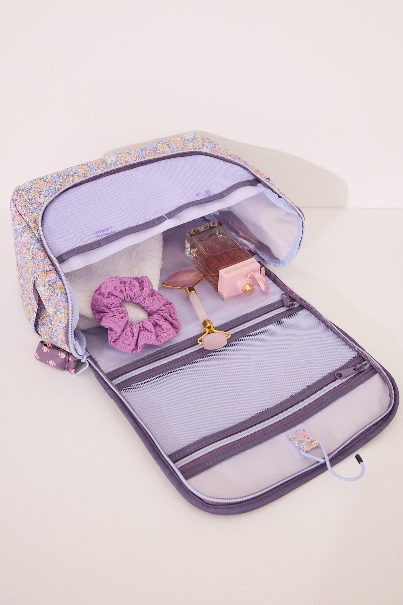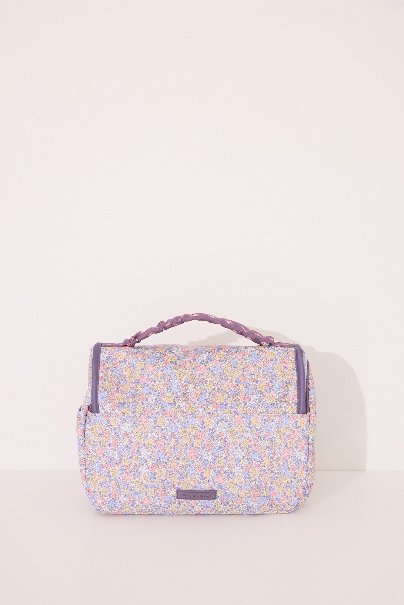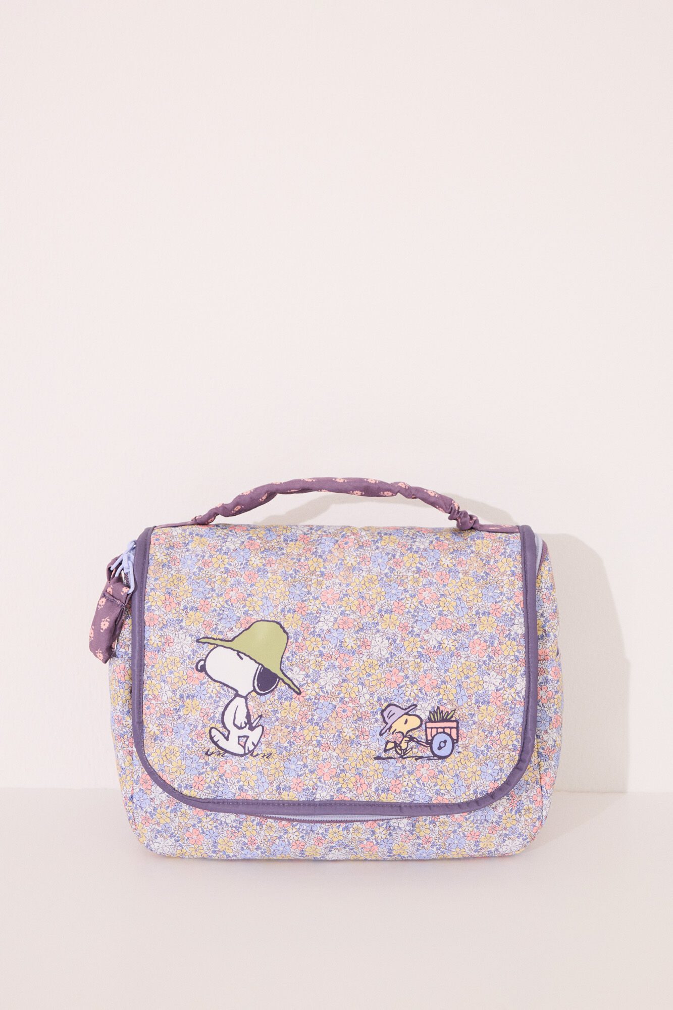 Large nylon vanity case with floral print and contrasting Snoopy print. With zip fastening and handle for carrying. Ideal for carrying all your beauty essentials on the go. Measurements: 20 cm x 28 cm x 13 cm.